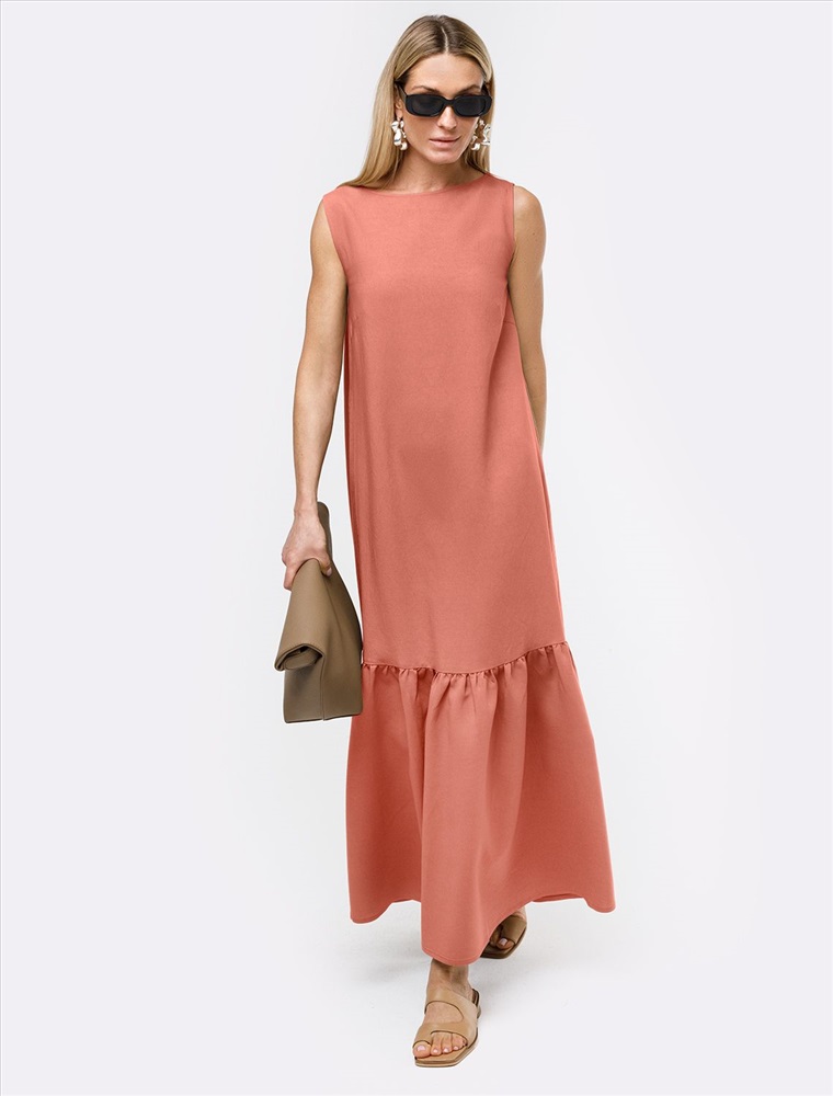 Параметры модели на первом фото: Рост 170, бюст 89, талия 63, бедра 92 Платье с горловиной формы лодочка выполнено из плотного лиоцелла. Модель прямого кроя дополнена пышным воланом снизу, изысканно развивающемся на ходу. Ткань хорошо держит форму, плавно драпируется и не просвечивает. В теплое время года приятно охлаждает кожу. Добавление синтетических волокон в составе изделия, предотвращает сминаемостьи поддерживает формоустойчивость. Комментарии к товару