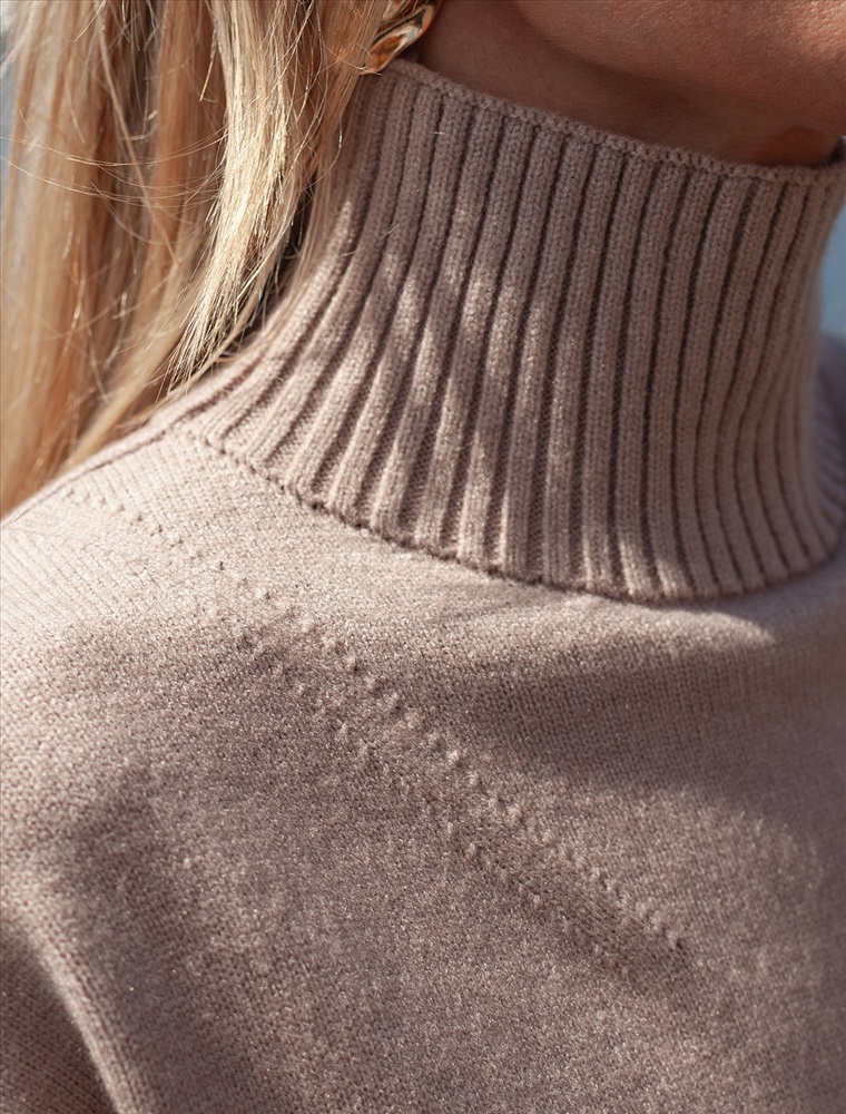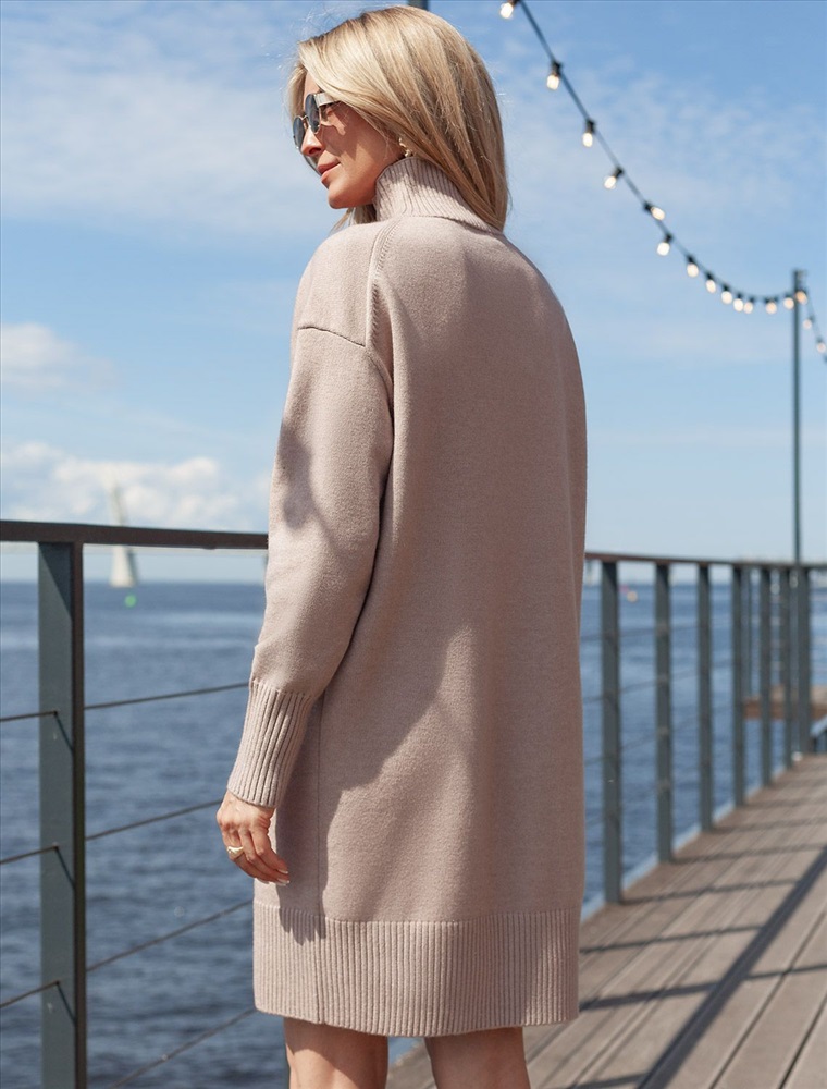 Размер товара на первом фото: 42 Платье с воротом стойка выполнено из мягкой меланжевой пряжи с кашемиром. Модель свободного силуэта со спущенным плечом хорошо впишется в расслабленные осенне-зимние аутфиты с высокими сапогами. Изделие очень приятное к телу, совершенно не колется и отлично сохраняет тепло при этом не перегревая.