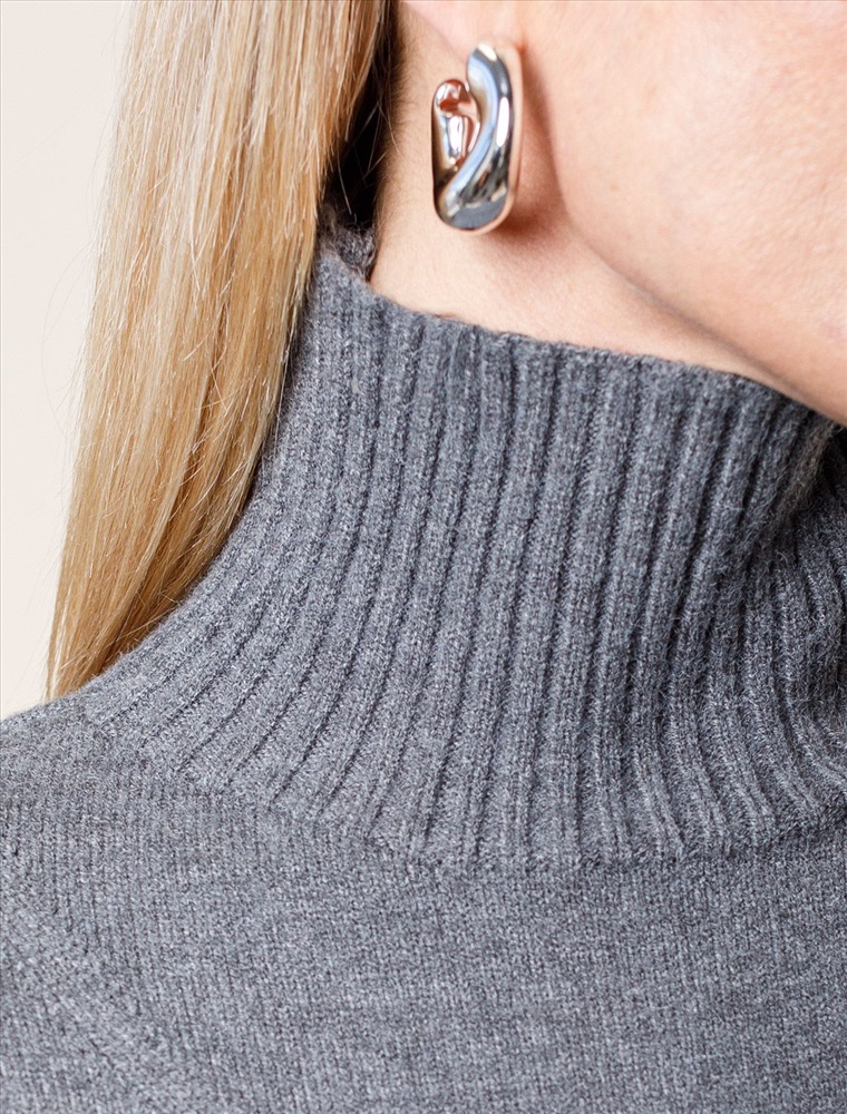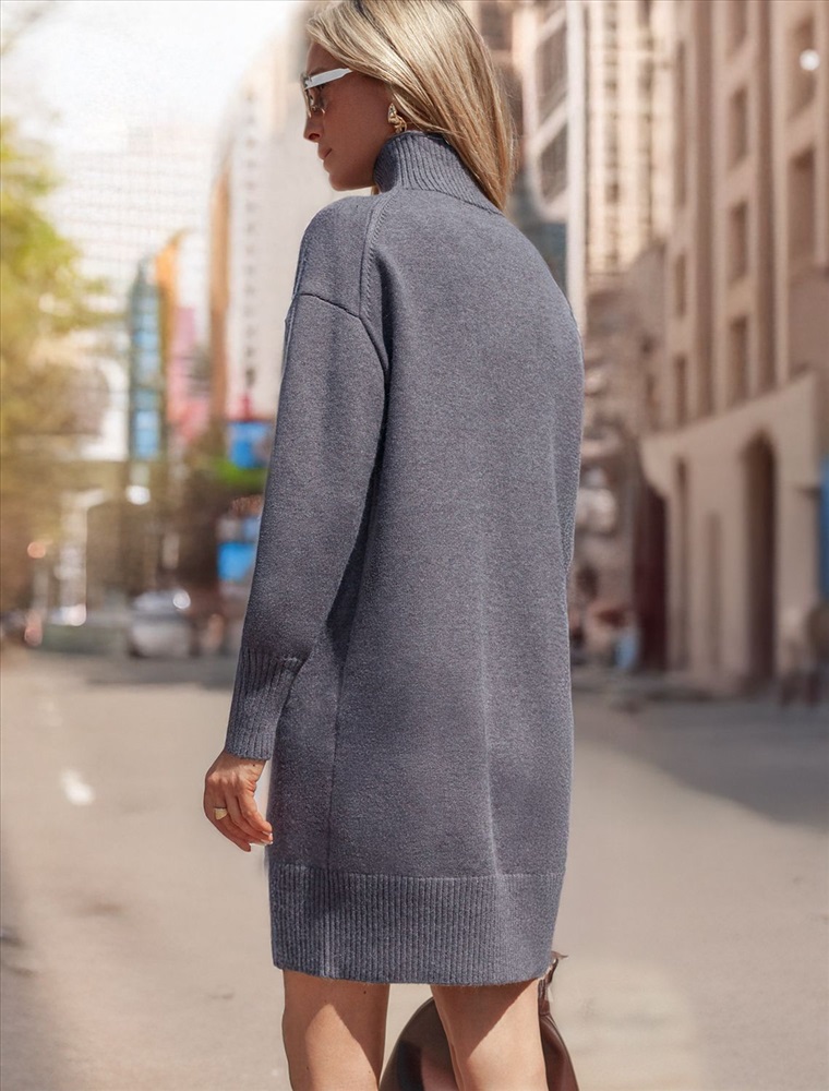 Размер товара на первом фото: 42 Платье с воротом стойка выполнено из мягкой меланжевой пряжи с кашемиром. Модель свободного силуэта со спущенным плечом хорошо впишется в расслабленные осенне-зимние аутфиты с высокими сапогами. Изделие очень приятное к телу, совершенно не колется и отлично сохраняет тепло при этом не перегревая.