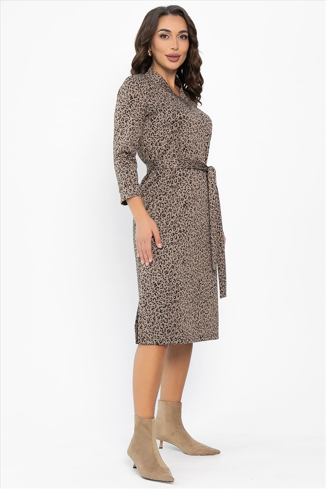 Цвет: коричневый Состав : 65% полиэстер, 30% вискоза, 5% эластан Материал : трикотаж Цвет : коричневый Принт : леопард Длина : миди Силуэт : полуприлегающий Карманы : отсутствуют Подкладка : отсутствует Вид застежки : без застёжки Декоративные элементы : пояс из основной ткани в комплекте Длина : 44-109 см, 48-109 см, 50-109 см, 52-109 см, 54-109 см Трикотажное платье в оттенке капучино с леопардовым принтом станет прекрасным дополнением в вашем гардеробе. Пояс из основной ткани, входящий в комплект, поможет подчеркнуть талию. Рукава длиной 3/4 оканчиваются манжетом. Создано для тех, кто ценит удобство, элегантность и индивидуальность стиля одновременно. Идеальное решение для повседневности, офиса или вечернего выхода. Внимание! Рекомендуем ориентироваться на размерную сетку и выбирать свой привычный размер, согласно размерной таблице. *Допуск отклонения длины при массовом производстве 1-3 см является нормой. Уход за изделием: Ручная стирка или стирка в машине при температуре до 30 °C, деликатный режим. Не использовать отбеливатели. Разрешена глажка при температуре до 110 °C. При глажке использовать специальную насадку на подошве утюга, гладить с паром. Не замачивать и не выжимать. Стирать изделие наизнанку, отдельно от других вещей.