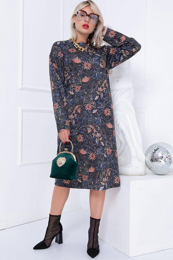 Лаванья – нарядное женственное платье полуприлегающего силуэта из трикотажа с цветочным принтом. Длинные рукава придают платью утонченность и делают его подходящим для прохладных времен года. Они могут быть подвернуты или оставлены внизу, в зависимости от Вашего предпочтения и стиля. Воротник стойка добавляет платью особую изящность и делает его подходящим для различных событий. Он придает образу элегантности и придержанности. Трикотажное платье – это модная и стильная вещь, которая подчеркнет Вашу индивидуальность и придаст особый шарм образу. Оно идеально подойдет для повседневных выходов, встреч с друзьями или даже для офиса, если сочетать его с аксессуарами и подходящей обувью! Дополнить образ и подчеркнуть линию талии Вы можете с помощью интересного пояса или ремня (на модели использован ремень Мероне, в комплект не входит).