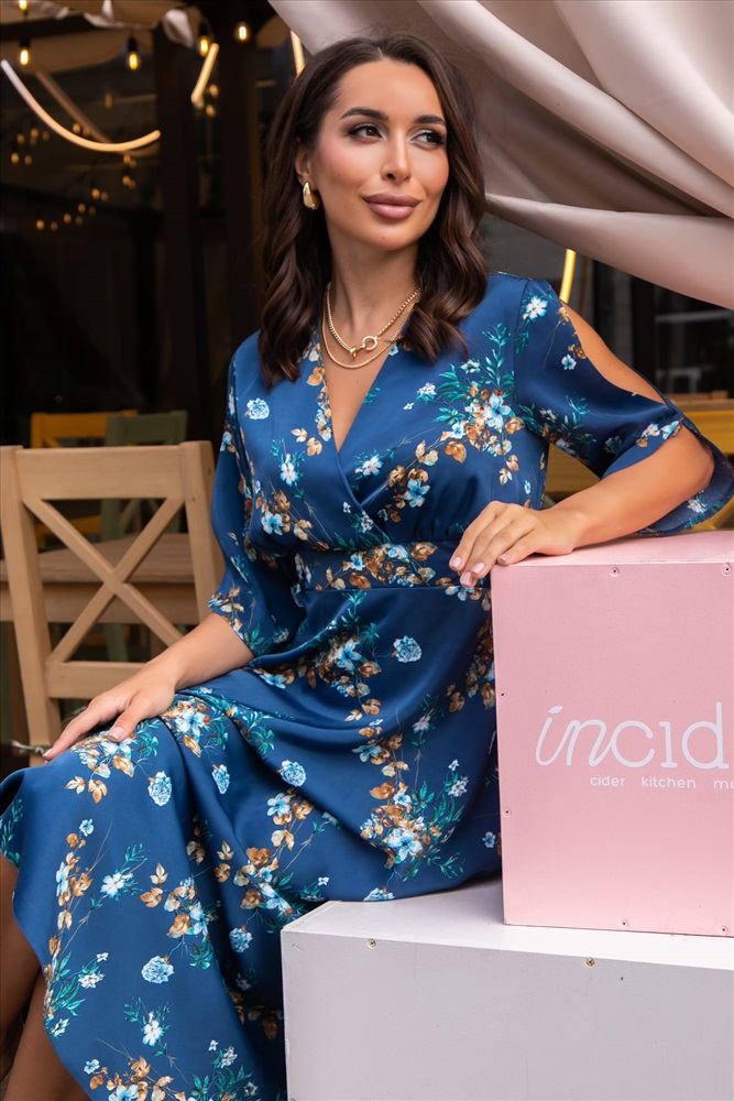 Платье в джинсовом цвете с цветочным принтом — покоряет своей нежностью и романтичностью, делая образ неповторимым и запоминающимся! Платье имеет отрезную талию, а в поясе предусмотрена резинка. Лиф платья выполнен на запах, а рукава состоят из двух частей. Юбка имеет форму полусолнца. С этим платьем вы точно будете в центре внимания!