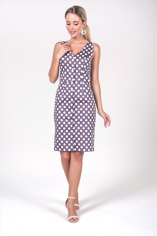 Ткань: 65% вискоза, 30% полиэстер, 5% эластан ОПИСАНИЕЭлегантное платье прилегающего силуэта из полотна с принтом горох. Модель выполнена на застежку петли - пуговицы по всей длине переда. V - образная горловина со стороны спинки и полочки на внутренней обтачке. Низ ровный, без разрезов. Изящное платье прекрасно дополнит ваш гардероб. Длина изделия: 42, 44, 46 р - 98 см; 48, 50, 52 р - 100 см Рост фотомодели: 172 см Размер фотомодели: 44 Ткань: "Хлопок - Сатин" Комментарии к товару