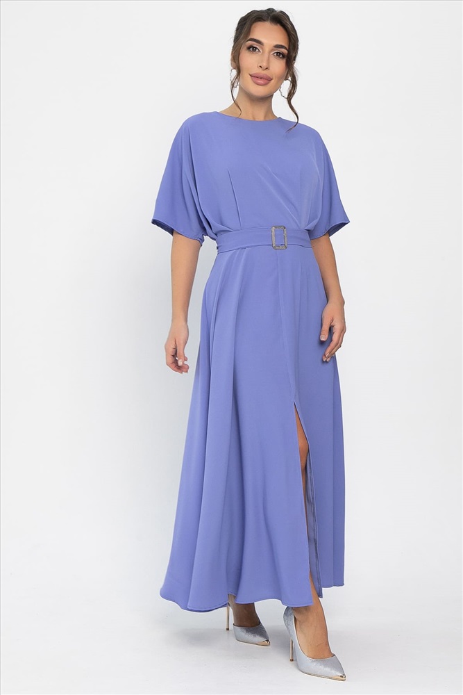 Цвет: фиолетовый Состав : 98% полиэстер, 2% эластан Материал : плательный (шелковистый) Цвет : фиолетовый Принт : отсутствует Длина : макси Силуэт : приталенный Карманы : отсутствуют Подкладка : отсутствует Вид застежки : молния сзади Декоративные элементы : пояс с металлической пряжкой Длина : 44-130 см, 46-130 см, 48-130 см, 50-130 см, 52-130 см, 54-130 см Элегантное платье в сиреневом цвете — настоящая находка для тех, кто ценит красоту линий и безупречный стиль. На спине расположена молния, которая облегчает процесс надевания. Платье имеет отрезную талию и две вертикальные складки, которые выполняют функцию вытачек, создавая изящный силуэт. Юбка длиной макси имеет форму расклешённой трапеции с эффектным разрезом спереди, что придаёт движениям динамичность и лёгкость. Пояс из основной ткани с металлической пряжкой, который входит в комплект, подчёркивает талию и завершает образ, придавая ему утончённости и стиля. Это платье — идеальный выбор для особых случаев и вечерних выходов. Внимание! Рекомендуем ориентироваться на размерную сетку и выбирать свой привычный размер, согласно размерной таблице. *Допуск отклонения длины при массовом производстве 1-3 см является нормой. Уход за изделием: Ручная стирка или стирка в машине при температуре до 30 °C, деликатный режим. Не использовать отбеливатели. Разрешена глажка при температуре до 110 °C. При глажке использовать специальную насадку на подошве утюга, гладить с паром. Не замачивать и не выжимать. Стирать изделие наизнанку, отдельно от других вещей.