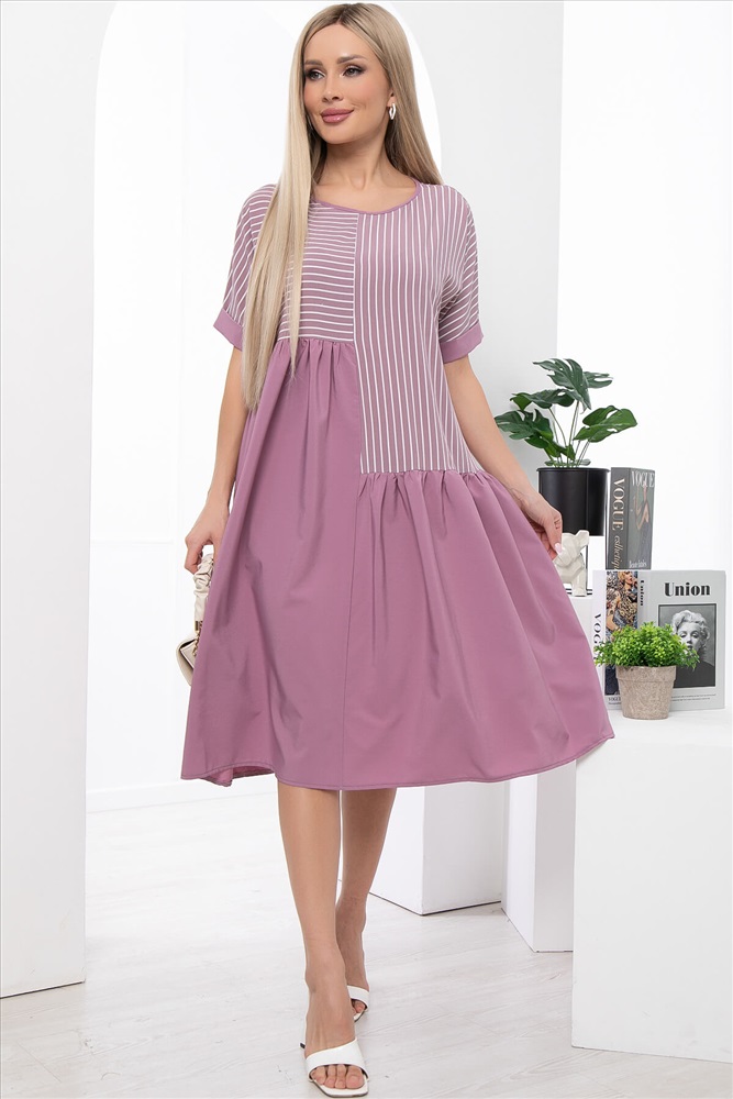 Красивое платье, которое прекрасно подойдет для повседневных образов! А в отпуске так просто незаменимая вещь! Платье свободного силуэта, удобной длины, рукав цельнокроеный - очень комфортен в носке, рукав укороченный на манжете. Принт "полоски" прекрасно корректирует линии фигуры.