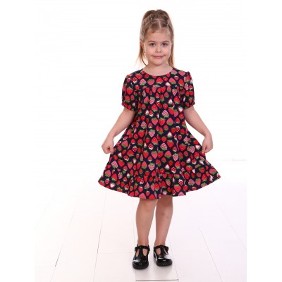 Летнее платье для девочки с коротким рукавом-фонариком и отрезной кокеткой на груди. Горловина детского платья округлая. Праздничное платье для девочки простое и стильное. Это и платье на день рождения, детское платье на 8 марта, платье в детский сад или на прогулку.