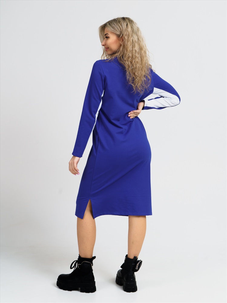 Платье в спортивном стиле прямого силуэта со вставками внутри рукава и на груди. Воротник-стойка с широкими шнурками. Отличный вариант на каждый день, который позволяет всегда выглядеть пркрасно и стильно.