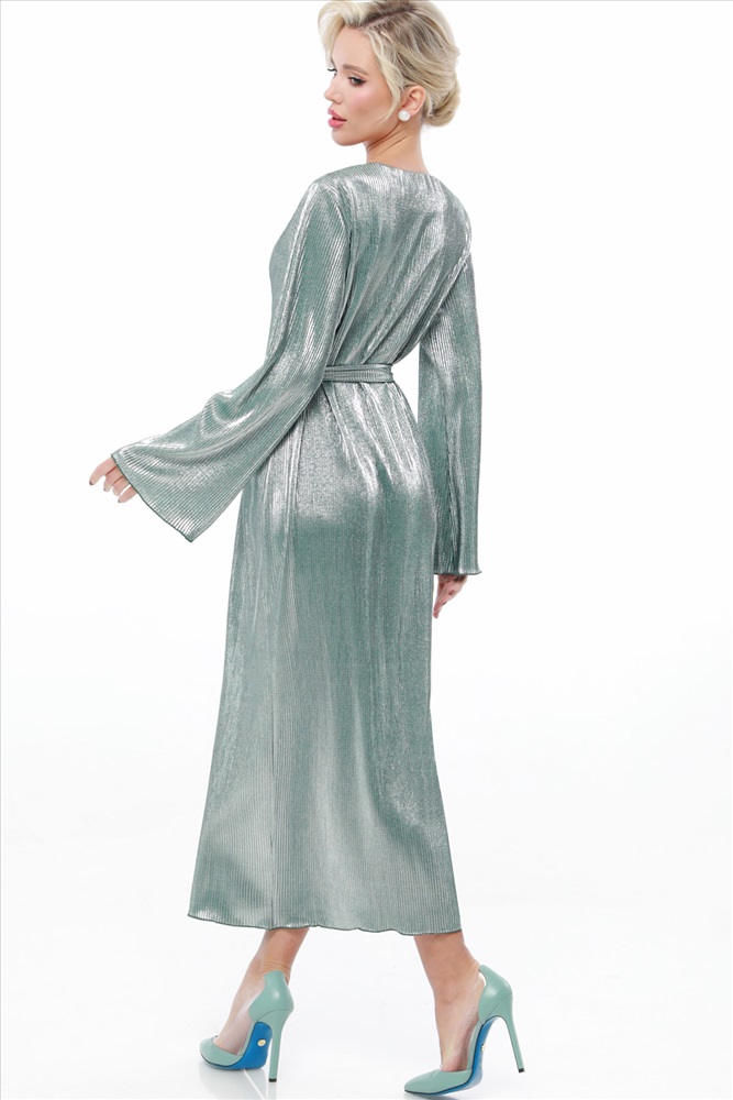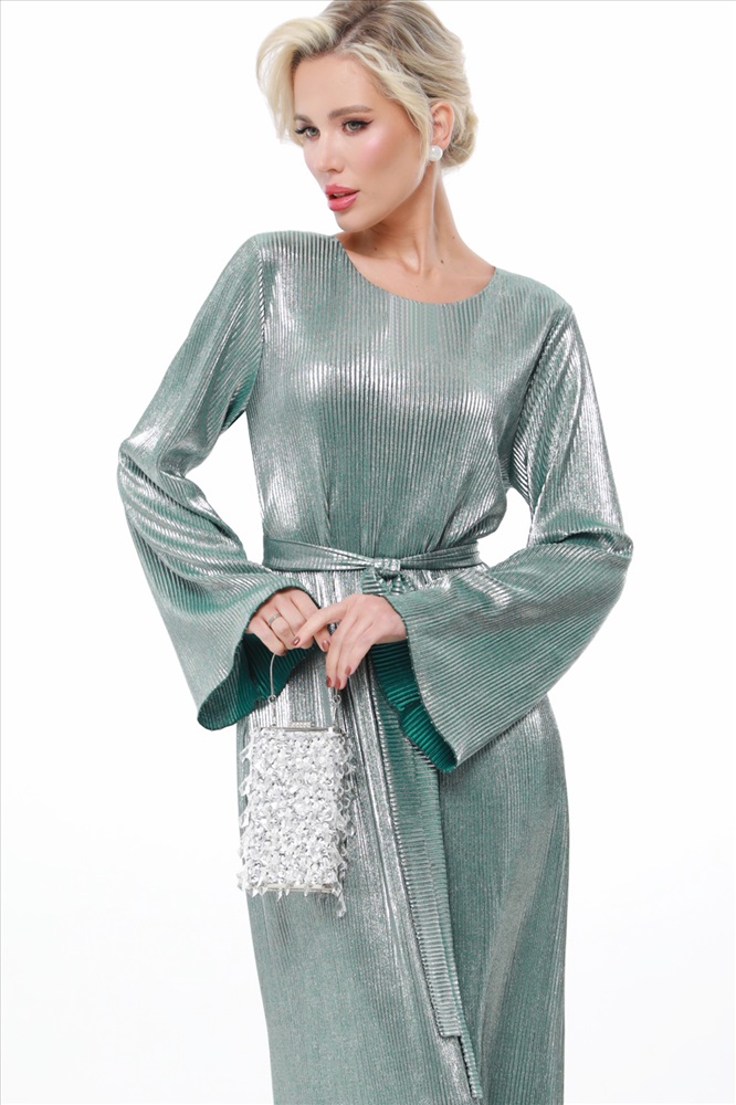 Декоративные элементы: Пояс Вид застёжки: Без застежки Вырез горловины: Округлый Длина изделия по спинке: 132 Модель платья: Прямой силуэт Назначение: Вечерняя мода Тип рукава: Длинный Уход за вещами: Бережная стирка при 30 градусах Фактура материала: Трикотажный Состав: 100% полиэстер Тип ткани: Трикотаж с напылением Цвет: Мятный Это платье выполнено в приятном мятном цвете, который придает образу свежесть и легкость. Изготовлено из трикотажа с напылением, что обеспечивает мягкость и комфорт при носке, а также приятный на ощупь вид. Отсутствие застежки делает надевание и снятие этого платья максимально удобным и простым, а наличие пояса добавляет акцент на талии и придает фигуре выразительность. Округлый вырез горловины делает образ женственным и аккуратным, а длинные рукава обеспечивают защиту от прохлады в демисезонный период. Модель платья - прямой силуэт, который выгодно подчеркивает фигуру и создает изящный образ. Уход за этим платьем прост: достаточно провести бережную стирку при 30 градусах, чтобы оно сохраняло свой первоначальный вид и качество. Длина: 42 размер - 132 см 44 размер - 132 см 46 размер - 133 см 48 размер - 133 см 50 размер - 134 см 52 размер - 134 см Бережная стирка при 30 градусах Цвет изделия на фотографии может отличаться от фактического товара, что связано с искажением цветопередачи монитором, настройками фотоаппаратуры и прочими факторами Пропорции