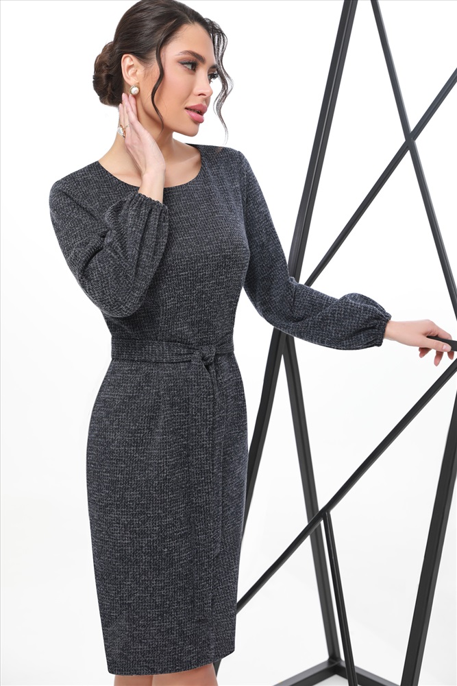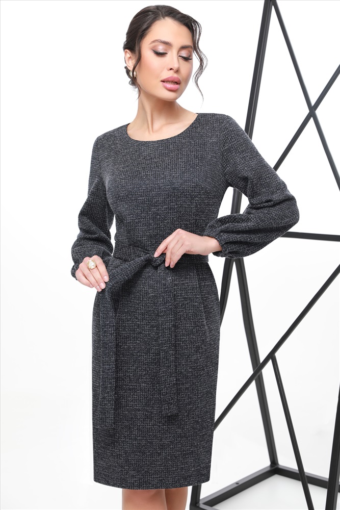 Теплое трикотажное платье в лаконичном стиле — утонченная модель, которая станет фаворитом на все случаи жизни. Полуприлегающий фасон красиво обрамляет фигуру и не стесняет движений. Но если вам не хватает женственных акцентов, всегда можно подчеркнуть талию с помощью пояса из комплекта. Изюминка платья — длинные широкие рукава со сборками на резинке. Они смотрятся оригинально и придают образу легкости, нежности и женственности. Платье выполнено из плотного, мягкого на ощупь трикотажа, который хорошо держит форму, дарит ощущение тепла и уюта. Дополните модель крупными украшениями и акцентным ремешком, чтобы наряд из делового превратился в вечерний. Рекомендуется стирать изделие в деликатном режиме без отжима при температуре до 30 градусов и сушить в расправленном виде.
