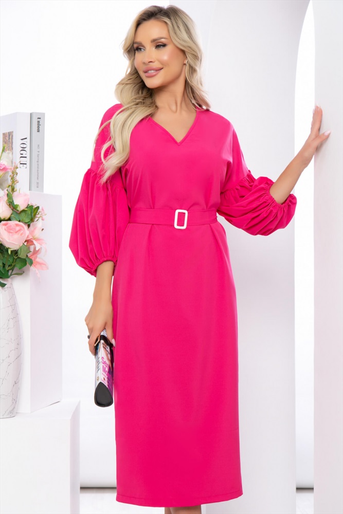 Артикул:П5387. Ткань:плательная. Состав:100% п/э. Цвет:фуксия. Вид застежки:без застёжки. Силуэт:прямой. Карманы:отсутствуют. Тип горловины:V-образный. Подкладка:отсутствует. Длина изделия по спинке:44/ 118 см, 46/ 118 см, 48/ 118 см, 50/ 119 см, 52/ 120 см, 54/ 120 см. Рост модели:168 см. Платье, притягивающее взгляды и завораживающее, словно магия! Платье прямого кроя с акцентными рукавами. Плечо спущено, низ рукава украшает буф, длина - три четверти. V-образный вырез горловины, сзади на юбке разрез. Платье из приятной к телу ткани без замков и без подкладки. В комплект входит пояс с пластиковой пряжкой. Уход за изделием: бережная стирка до 30 градусов, нельзя отбеливать, деликатный отжим, гладить при t не более 110 С, гладить с изнанки. *Допуск отклонения длины при массовом производстве 1-3 см является нормой.