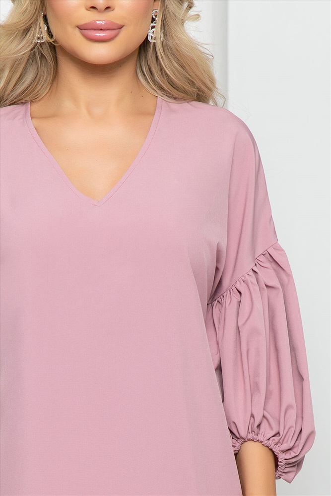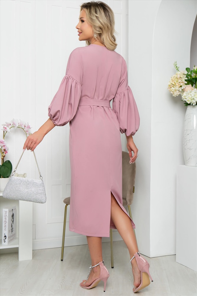 Цвет: пыльно-розовый Артикул: П5388. Ткань: плательная. Состав: 100% п/э. Цвет: пыльно-розовый. Вид застежки: без застёжки. Силуэт: прямой. Карманы: отсутствуют. Тип горловины: V-образный. Подкладка: отсутствует. Длина изделия по спинке: 44/ 118 см, 46/ 118 см, 48/ 118 см, 50/ 119 см, 52/ 120 см, 54/ 120 см. Рост модели: 168 см. Платье, притягивающее взгляды и завораживающее, словно магия!  Платье прямого кроя с акцентными рукавами. Плечо спущено, низ рукава украшает буф, длина - три четверти. V-образный вырез горловины, сзади на юбке разрез. Платье из приятной к телу ткани без замков и без подкладки. В комплект входит пояс с пластиковой пряжкой. Уход за изделием: бережная стирка до 30 градусов; нельзя отбеливать; деликатный отжим; гладить при t не более 110 С; гладить с изнанки. *Допуск отклонения длины при массовом производстве 1-3 см является нормой.