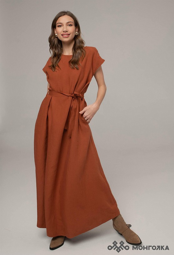 Одежда из льняной ткани Mongolka – это сочетание стиля и комфорта, изящности и элегантности на каждый день. Платье "Прага" с поясом, без рукавов, со скрытыми карманами в шве.