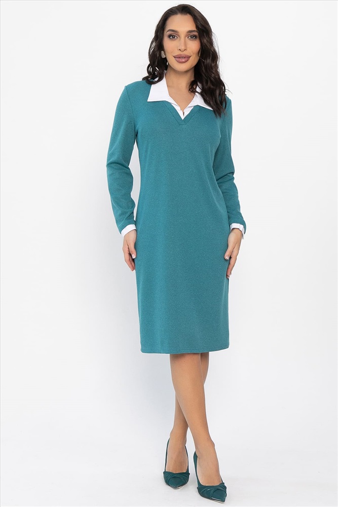 Платье из трикотажного материала с белоснежными вставками из хлопка — отличный выбор для офиса и официальных мероприятий. Чтобы подчеркнуть талию, можно использовать пояс, который входит в комплект. Сочетайте его с аксессуарами и обувью по своему вкусу, чтобы создать неповторимый образ для любого случая. Воротник и манжеты на рукавах выполнены из хлопка. Пояс на пряжке
