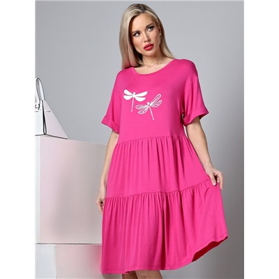 Летнее платье выполненное из трикотажной ткани, сочетает в себе комфорт и стиль. Платье выполнено в А-силуэте, что обеспечивает свободу движений и комфорт. А-силуэт, расширяющийся к низу, подходит для различных типов фигур, помогая скрыть возможные недостатки и подчеркивая достоинства. Короткие рукава добавляют платью дополнительную легкость и делают его еще более удобным для летних дней. Принт на платье добавляет образу яркости и индивидуальности. Уход за платьем прост и не требует особых усилий. Рекомендуется бережная стирка при температуре 30 градусов.