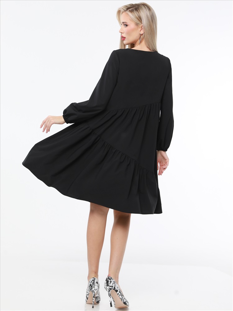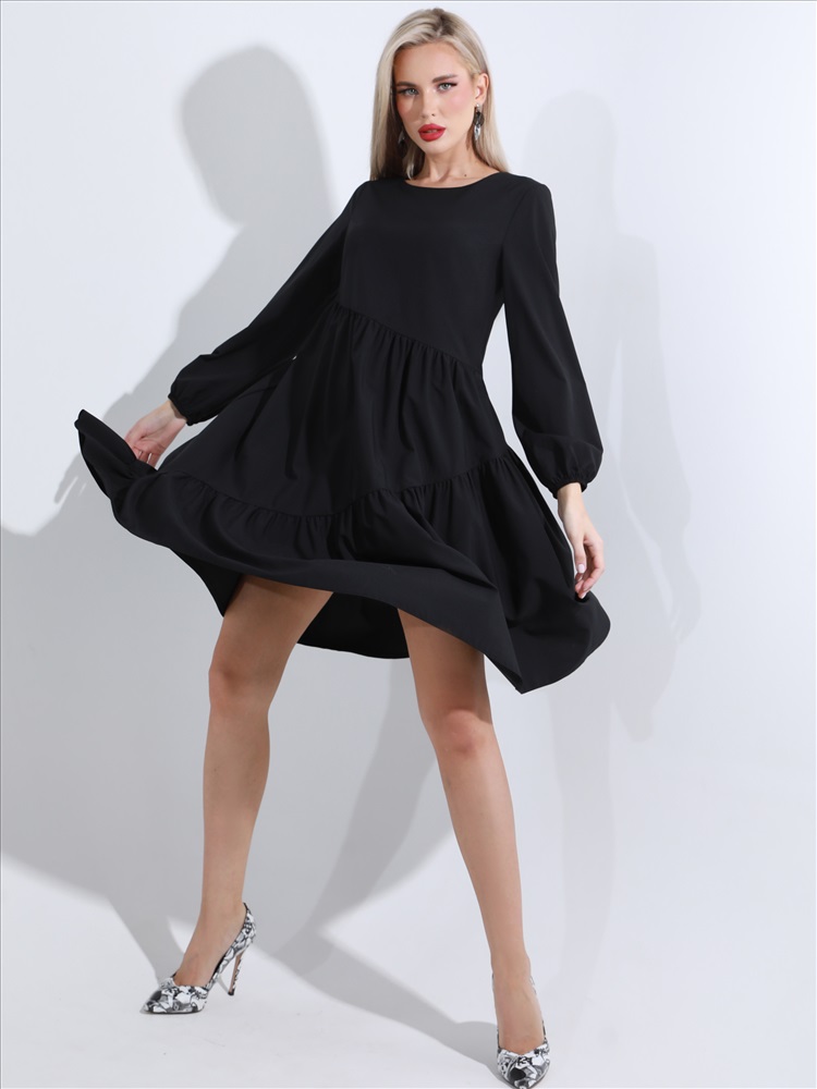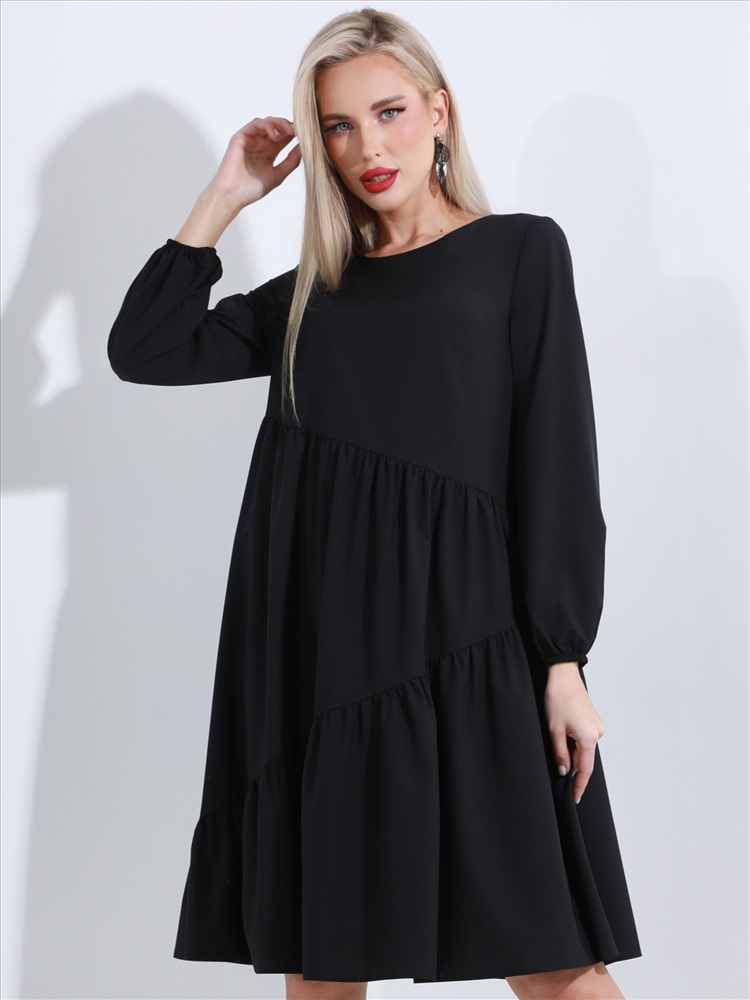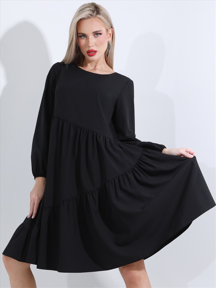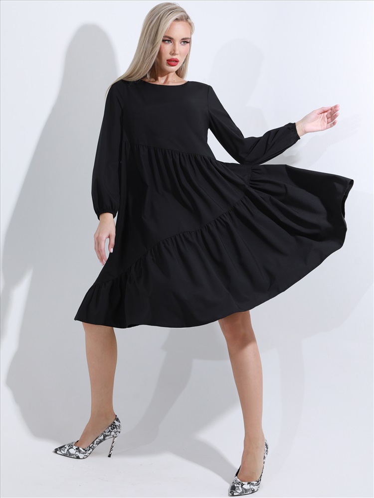 Это платье из ниагары - идеальный выбор для тех, кто ценит простоту, но не хочет отказываться от оригинальности. Ассиметричная оборка придает платью неповторимый вид, добавляя легкости и игривости образу. Длинные рукава и округлый вырез горловины делают его универсальным для различных ситуаций. Ткань, из которой изготовлено платье, обладает отличной эластичностью, легкостью и прочностью, обеспечивая комфорт при ношении и долговечность изделия. Это платье идеально подходит для летних вечеринок, свиданий или прогулок, обеспечивая свежий и стильный образ.