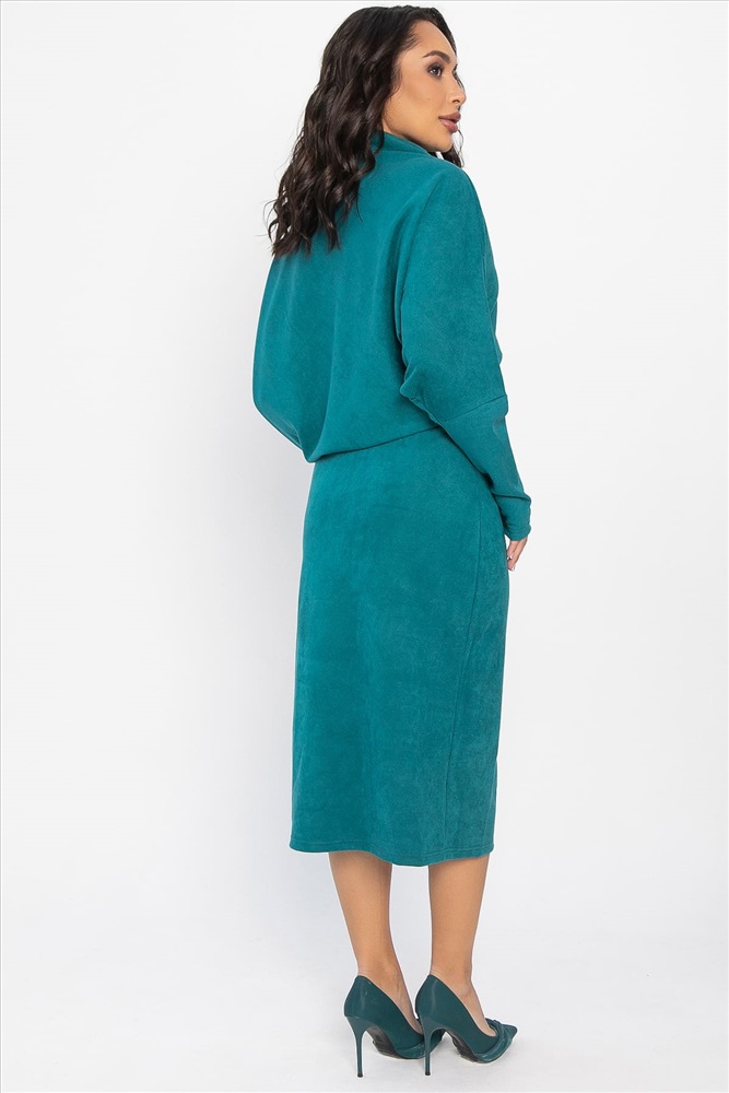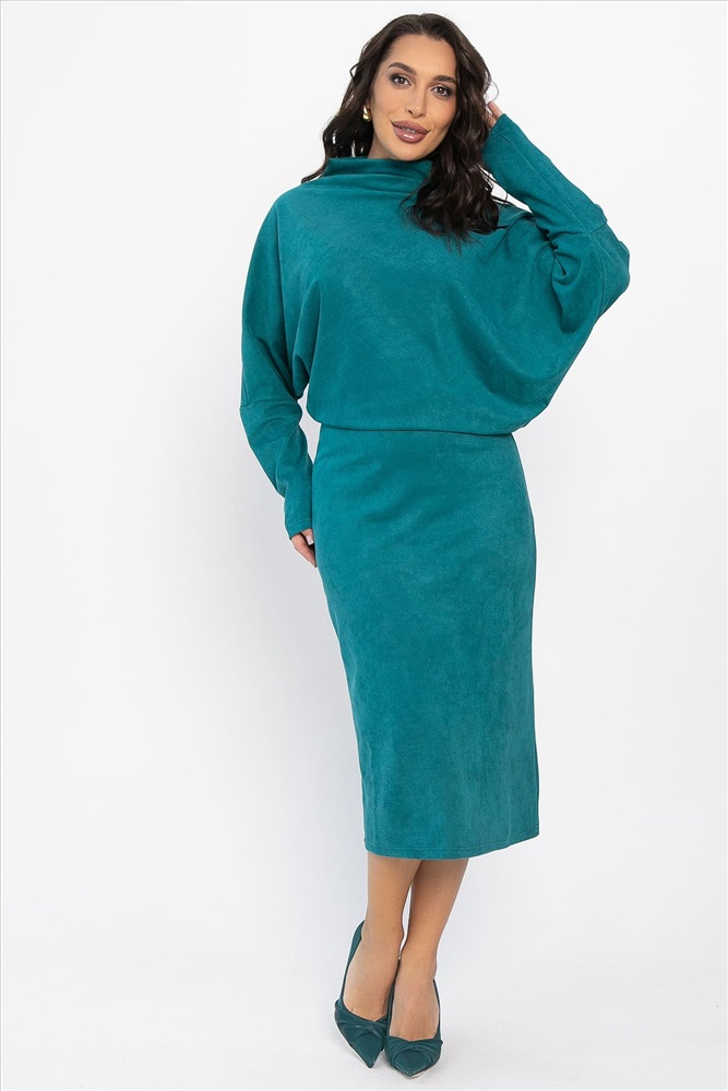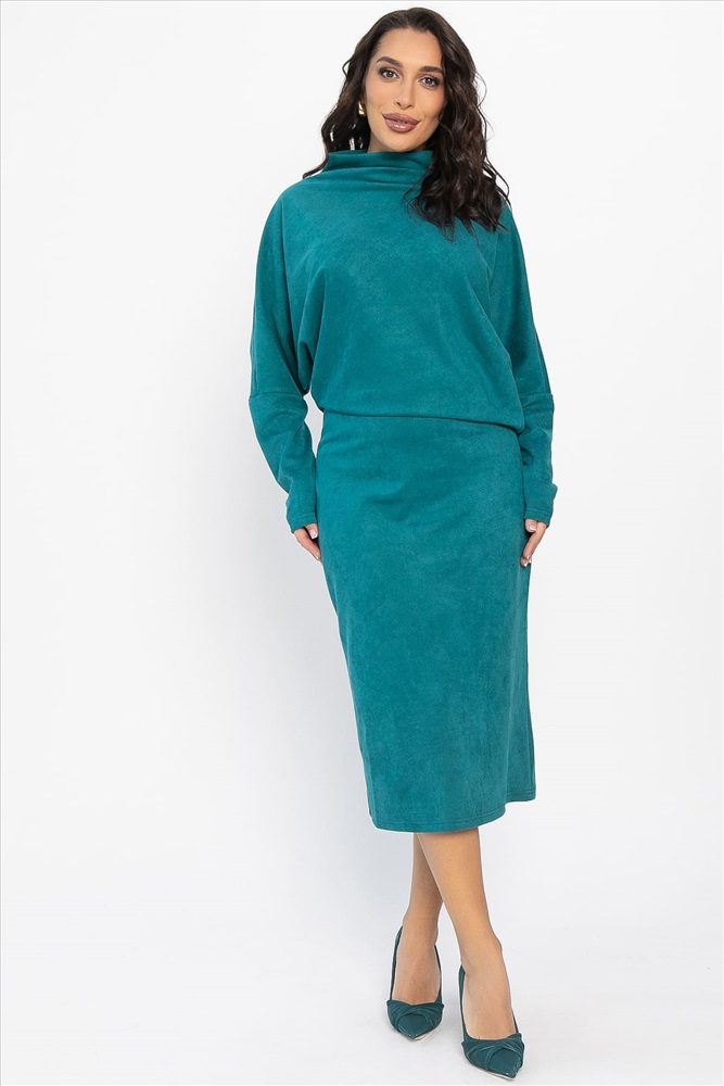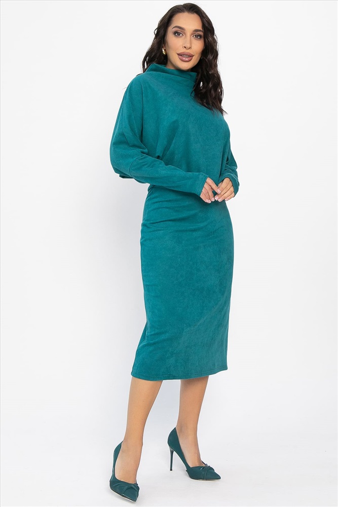 Изысканное асимметричное платье, сочетающее в себе стиль и комфорт. Его асимметричный крой придаёт образу оригинальность и динамичность. Верх платья скроен по типу «летучая мышь», что создаёт ощущение лёгкости и воздушности. Отрезная талия на резинке идеально подчёркивает фигуру и обеспечивает идеальную посадку, что делает это платье подходящим для разных типов фигур. Воротник-стойка цельнокроеный, что придаёт платью элегантность. Это платье станет идеальным выбором для вечерних выходов, деловых встреч или прогулок по городу. Сочетайте его с любимыми аксессуарами и обувью, чтобы создать стильный образ