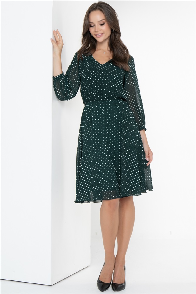 Нарядное элегантное платье от бренда Diolche должно быть у каждой женщины. Стильное и модное платье из качественного шифона в цветочный принт визуально стройнит, делая образ более изящным. Прозрачные рукава и V образный вырез добавляют романтичности. Воздушное шифоновое платье эффектно смотрится на любом типе фигуры. Женское платье приталенного силуэта, юбка свободная, расклешенная к низу. Платье имеет идеальную посадку благодаря индивидуальной корректировки длины за счет мягкой комфортной резинки на талии. Рукава втачные, длиной 3/4, снизу подогнуты и сосборены на резинку. Платье с подкладом, притачным по горловине и пройме. Без ремня, ремень как пример образа. Длина изделия :44р-105см,46р-107см,48р-107см,50р-107см,52р-108см,54р-109см Комментарии к товару