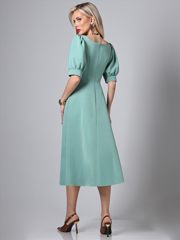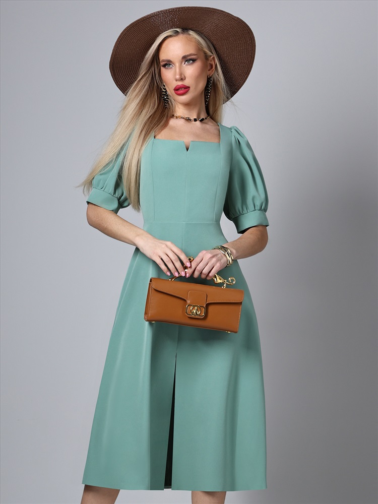 Платье яркого цвета – это идеальный выбор для летнего гардероба, сочетающий в себе элегантность и комфорт. Изготовленное из плательно-костюмной ткани, оно обладает превосходными характеристиками: мягкость, легкость и прочность. Этот материал позволяет платью сохранять форму и выглядеть стильно в любых условиях, обеспечивая при этом максимальный комфорт в носке. Особенностью этого платья является разрез спереди, который добавляет ему изящности и делает образ более динамичным. Разрез позволяет свободно двигаться и создает интересный визуальный эффект, привлекая внимание к ногам. Это придает платью немного кокетливости, оставаясь при этом уместным для различных случаев – от повседневных прогулок до вечерних мероприятий. Важным элементом дизайна является кареобразный вырез горловины, который подчеркивает линию шеи и декольте. Такой вырез гармонично сочетается с остальными деталями платья, создавая элегантный и утонченный образ. Кареобразный вырез делает платье более женственным и позволяет носить его как самостоятельно, так и в сочетании с различными аксессуарами. Рукава-фонарики до локтя добавляют образу романтичности и легкости. Этот стиль рукавов создает объем, придавая силуэту мягкие очертания. Рукава-фонарики обеспечивают свободу движений и комфорт, делая платье идеальным выбором для жарких летних дней. Они также добавляют визуальный интерес и делают платье более выразительным. Полуприлегающий силуэт платья выгодно подчеркивает фигуру, создавая изящные линии и делая акцент на талии. Такой крой подходит для различных типов фигур, обеспечивая комфорт и стильный вид. Полуприлегающий силуэт позволяет чувствовать себя уверенно и комфортно в любой ситуации. Для удобства надевания и снятия платье оснащено молнией. Это практичное решение делает платье не только красивым, но и функциональным. Молния расположена таким образом, чтобы не нарушать эстетичность общего вида и обеспечивать легкость в использовании. Уход за платьем также не требует особых усилий. Рекомендуется бережная стирка при 30 градусах, что позволяет сохранить первоначальный вид ткани и продлить срок службы изделия. Следование этим простым рекомендациям по уходу обеспечит сохранение яркости цвета и формы платья на долгое время. Платье универсального цвета – это стильное и удобное решение для летнего гардероба. Оно сочетает в себе современные тенденции моды и практичность, делая его подходящим для различных ситуаций. Это платье станет отличным дополнением к вашему гардеробу, подчеркивая вашу индивидуальность и утонченный вкус.