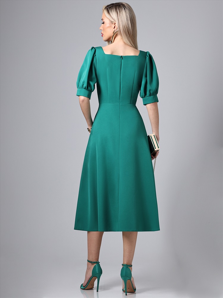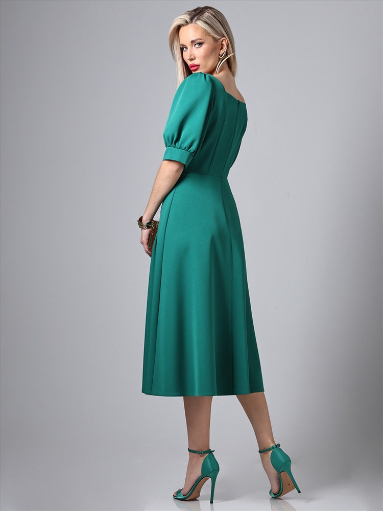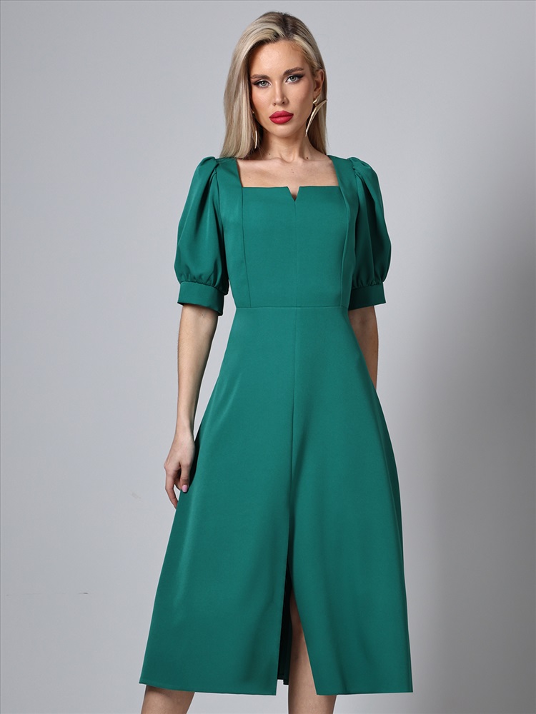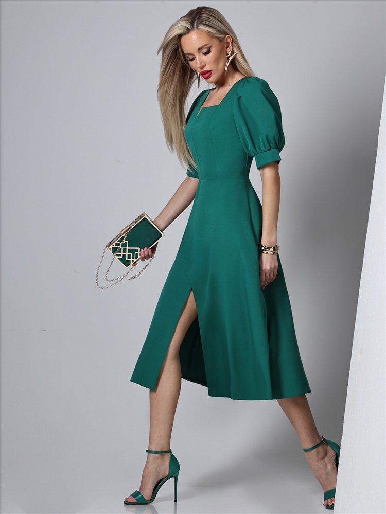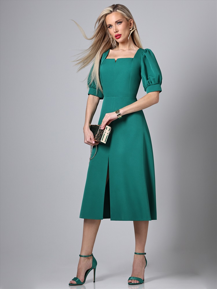 Декоративные элементы: Разрез Вид застёжки: Молния Вырез горловины: Каре Длина изделия по спинке: 117 Модель платья: Полуприлегающий силуэт Назначение: Повседневная Тип рукава: Короткий Уход за вещами: Бережная стирка при 30 градусах Фактура материала: Текстильный Состав: 100% полиэстер Тип ткани: Плательно-костюмная Цвет: Зелёный Платье яркого цвета – это идеальный выбор для летнего гардероба, сочетающий в себе элегантность и комфорт. Изготовленное из плательно-костюмной ткани, оно обладает превосходными характеристиками: мягкость, легкость и прочность. Этот материал позволяет платью сохранять форму и выглядеть стильно в любых условиях, обеспечивая при этом максимальный комфорт в носке. Особенностью этого платья является разрез спереди, который добавляет ему изящности и делает образ более динамичным. Разрез позволяет свободно двигаться и создает интересный визуальный эффект, привлекая внимание к ногам. Это придает платью немного кокетливости, оставаясь при этом уместным для различных случаев – от повседневных прогулок до вечерних мероприятий. Важным элементом дизайна является кареобразный вырез горловины, который подчеркивает линию шеи и декольте. Такой вырез гармонично сочетается с остальными деталями платья, создавая элегантный и утонченный образ. Кареобразный вырез делает платье более женственным и позволяет носить его как самостоятельно, так и в сочетании с различными аксессуарами. Рукава-фонарики до локтя добавляют образу романтичности и легкости. Этот стиль рукавов создает объем, придавая силуэту мягкие очертания. Рукава-фонарики обеспечивают свободу движений и комфорт, делая платье идеальным выбором для жарких летних дней. Они также добавляют визуальный интерес и делают платье более выразительным. Полуприлегающий силуэт платья выгодно подчеркивает фигуру, создавая изящные линии и делая акцент на талии. Такой крой подходит для различных типов фигур, обеспечивая комфорт и стильный вид. Полуприлегающий силуэт позволяет чувствовать себя уверенно и комфортно в любой ситуации. Для удобства надевания и снятия платье оснащено молнией. Это практичное решение делает платье не только красивым, но и функциональным. Молния расположена таким образом, чтобы не нарушать эстетичность общего вида и обеспечивать легкость в использовании. Уход за платьем также не требует особых усилий. Рекомендуется бережная стирка при 30 градусах, что позволяет сохранить первоначальный вид ткани и продлить срок службы изделия. Следование этим простым рекомендациям по уходу обеспечит сохранение яркости цвета и формы платья на долгое время. Платье универсального цвета – это стильное и удобное решение для летнего гардероба. Оно сочетает в себе современные тенденции моды и практичность, делая его подходящим для различных ситуаций. Это платье станет отличным дополнением к вашему гардеробу, подчеркивая вашу индивидуальность и утонченный вкус. Длина: 44 размер - 117 см 46 размер - 117 см 48 размер - 118 см 50 размер - 118 см 52 размер - 119 см 54 размер - 119 см 56 размер - 120 см Бережная стирка при 30 градусах Цвет изделия на фотографии может отличаться от фактического товара, что связано с искажением цветопередачи монитором, настройками фотоаппаратуры и прочими факторами Пропорции