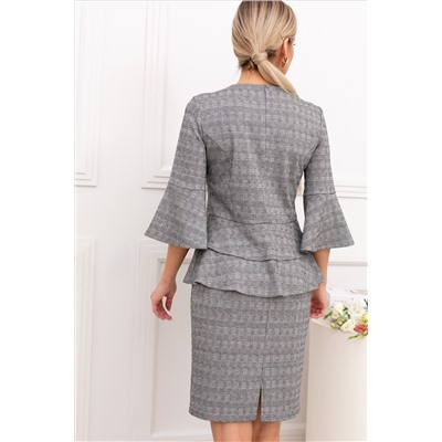 Ткань: 65% вискоза, 30% полиэстер, 5% эластан ОПИСАНИЕПриталенное платье из трикотажной ткани с узором "клетка". Круглый вырез горловины на внутренней обтачке. Рукава втачные ¾ оканчиваются воланами. По центру спинки расположена потайная застежка-молния. Платье отрезное по талии. Притачная двойная баска придаст облику особую женственность и дополнительно подчеркнет талию. Низ заужен, подол прямой, сзади разрез. Платье идеально подойдет для деловых встреч. Ремень №75 в комплект не входит, но вы можете приобрести его в разделе АКСЕССУАРЫ. Длина изделия: 42,44,46 р - 91см; 48,50 р - 93 см Длина рукава: 40 см Рост фотомодели: 168 см Размер фотомодели: 42 Ткань: трикотаж Комментарии к товару