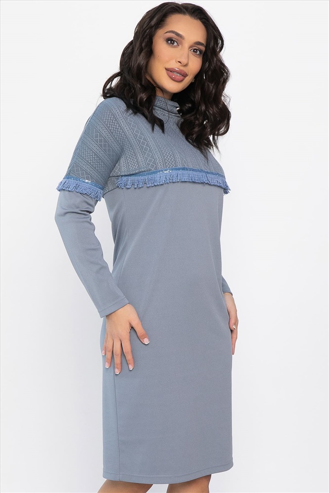 Цвет: серый Состав : 65% полиэстер, 30% вискоза, 5% эластан Материал : трикотаж Цвет : серый Принт : отсутствует Длина : миди Силуэт : полуприлегающий Карманы : отсутствуют Подкладка : отсутствует Вид застежки : без застёжки Декоративные элементы : бахрома Длина : 44-106 см, 46-107 см, 48-108 см, 50-109 см, 52-110 см, 54-111 см Платье из трикотажа прекрасно подчёркивает фигуру. За счёт использования разных текстур оно выглядит необычно и оригинально. Такой наряд можно надеть и в офис, и в ресторан — он подойдёт для любого случая. Внимание! Рекомендуем ориентироваться на размерную сетку и выбирать свой привычный размер, согласно размерной таблице. *Допуск отклонения длины при массовом производстве 1-3 см является нормой. Уход за изделием: Ручная стирка или стирка в машине при температуре до 30 °C, деликатный режим. Не использовать отбеливатели. Разрешена глажка при температуре до 110 °C. При глажке использовать специальную насадку на подошве утюга, гладить с паром. Не замачивать и не выжимать. Стирать изделие наизнанку, отдельно от других вещей.