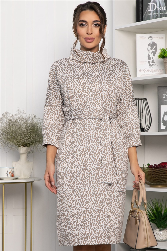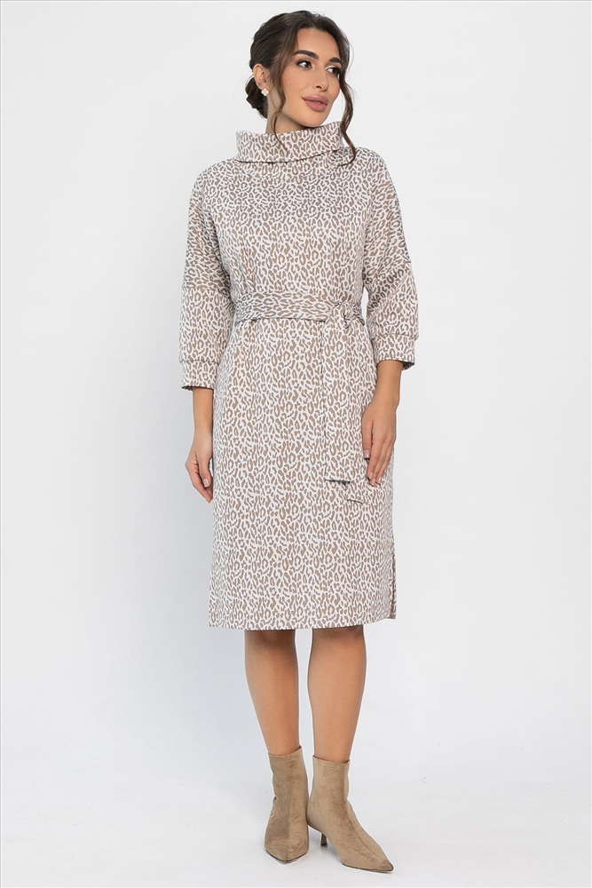 Женственное платье из трикотажа - вариант, который прекрасно подойдёт для создания стильного повседневного образа. Платье свободного кроя является самой удобной моделью платья, потому как скрывает недостатки и не ограничивает движений. Рукав три четверти, со спущенным плечевым швом, по низу манжет. В комплект входит пояс из основной ткани. По боковым швам изделия небольшие разрезы.