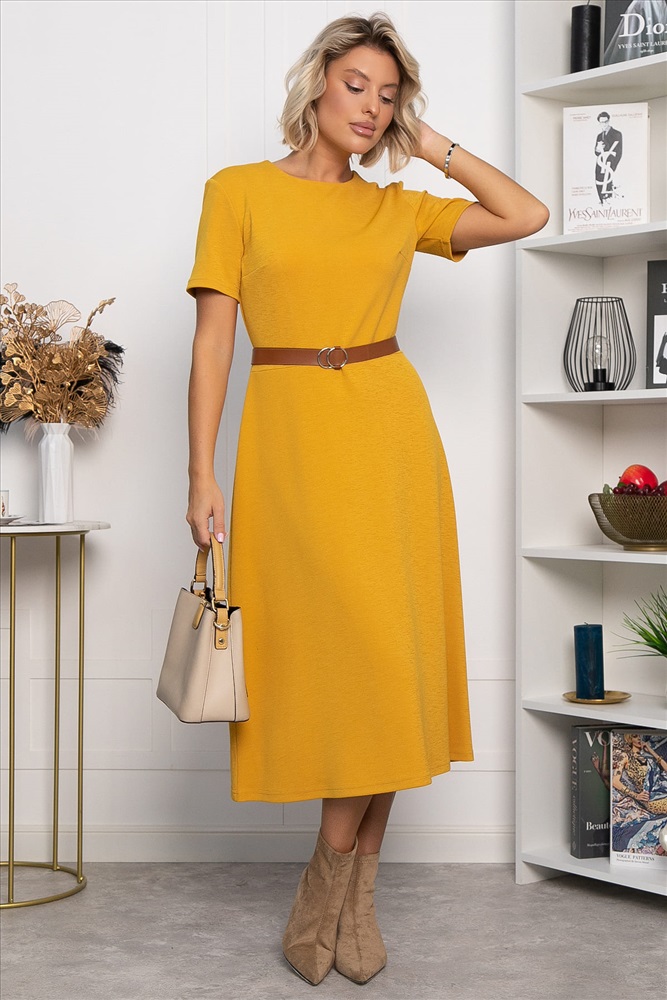 Платье модного цвета подчеркивает женственность и элегантность. Короткий рукав добавит романтичности и лёгкости, а пояс контрастного цвета помогает акцентировать талию. Отсутствие подкладки делает платье более легким и комфортным для носки. Это отличный выбор для различных мероприятий, от повседневных встреч до более торжественных случаев.