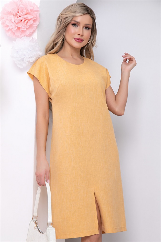 Артикул:П5698. Ткань:плательная с имитацией льна. Состав:95% п/э, 5% эластан. Цвет:желтый. Вид застежки:без застёжки. Силуэт:прямой. Карманы:отсутствуют. Тип горловины:округлый с акцентным разрезом. Длина изделия:46/ 97 см, 48/ 99 см, 50/ 101 см, 52/ 103 см, 54/ 105 см. Рост модели:168 см. Универсальное платье прямого силуэта точно станет Вашим любимым, ведь оно точно подойдет на любой случай! А яркий и насыщенныйоттенок платья точно не оставит Вас без внимания! Образ дополняет классический округлый вырез, с дополнением в виде разреза. Уход за изделием: бережная стирка до 30 градусов, нельзя отбеливать, деликатный отжим, гладить при t не более 110 С, гладить с изнанки. *Допуск отклонения длины при массовом производстве 1-3 см является нормой.