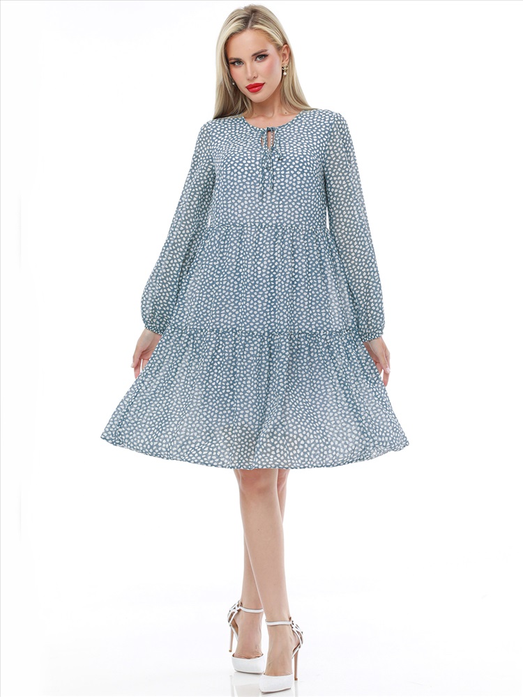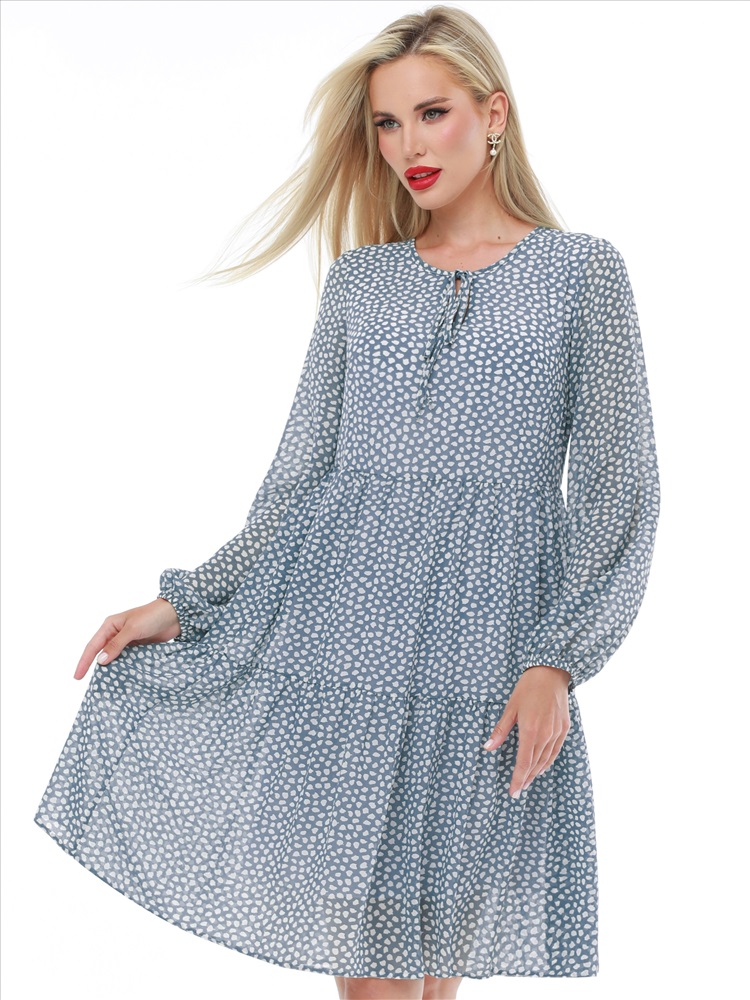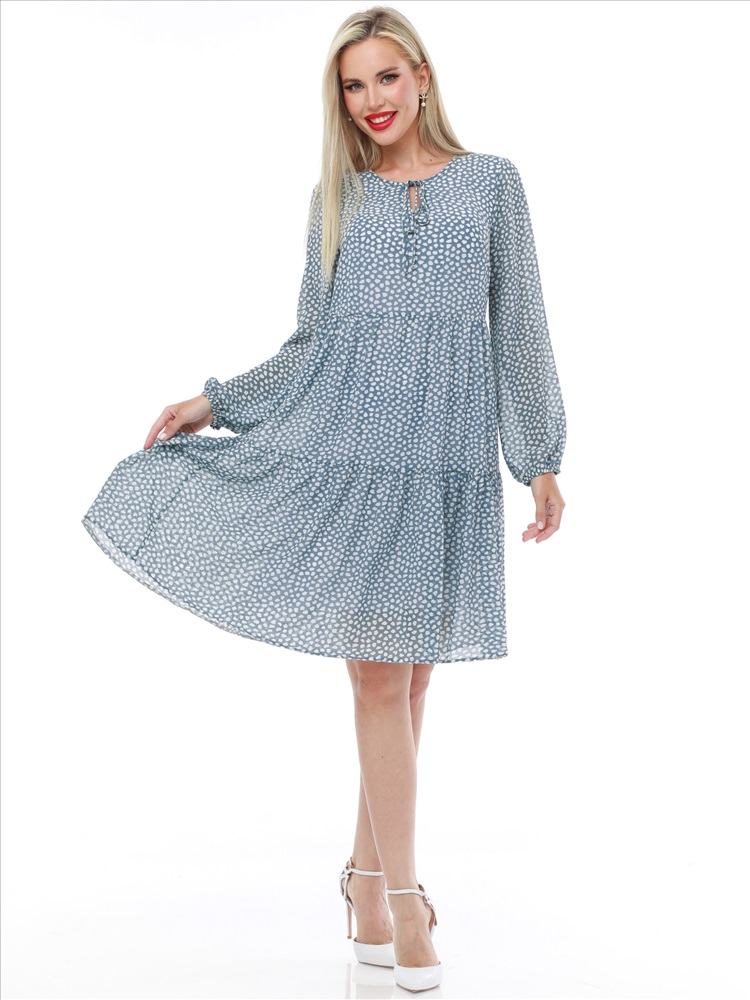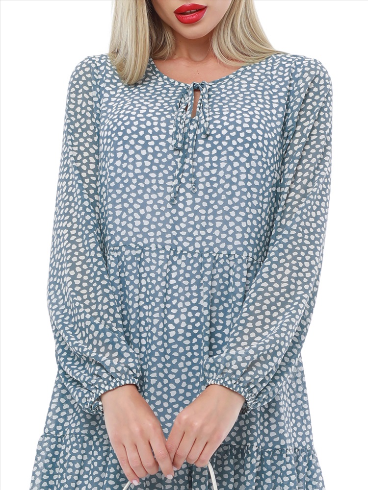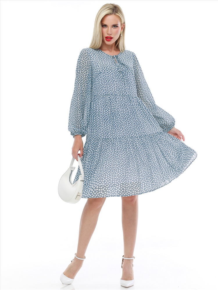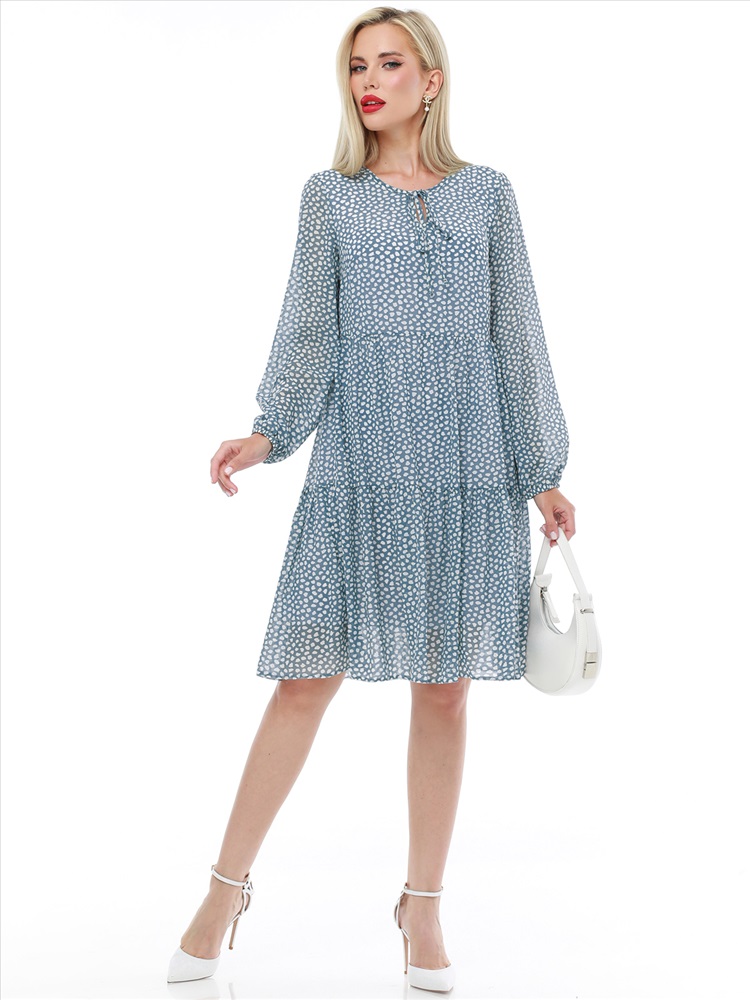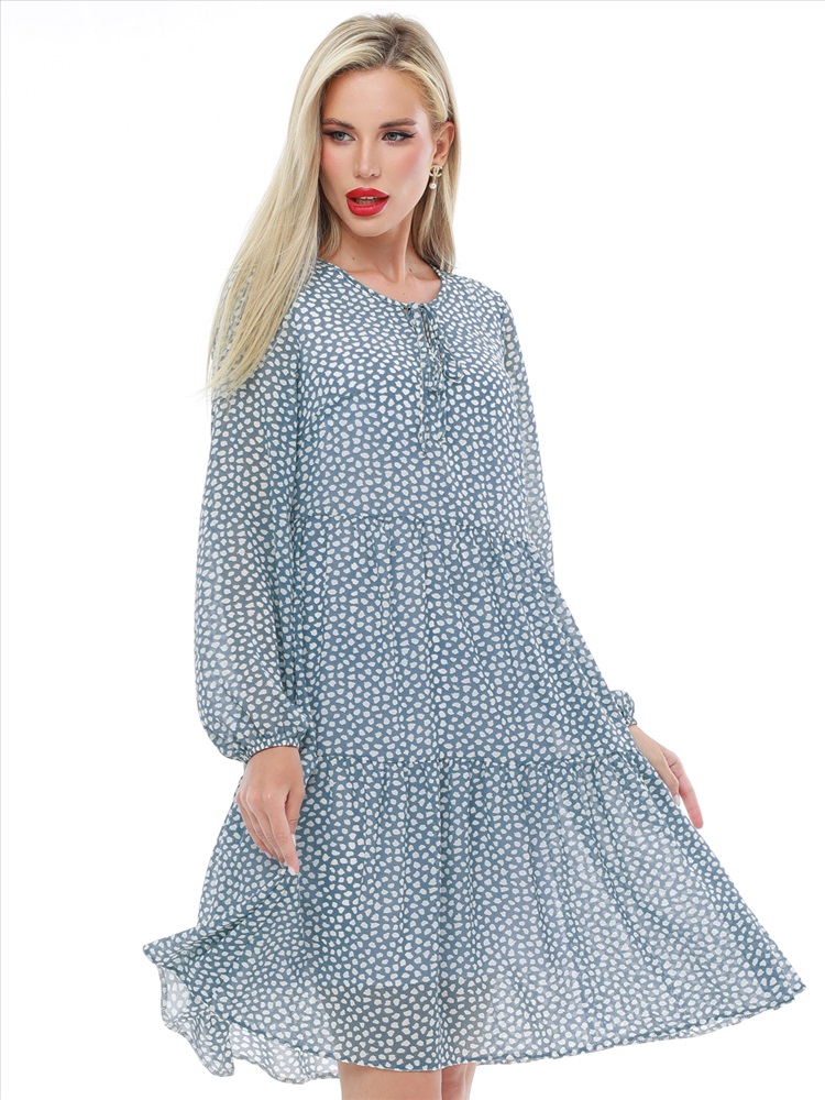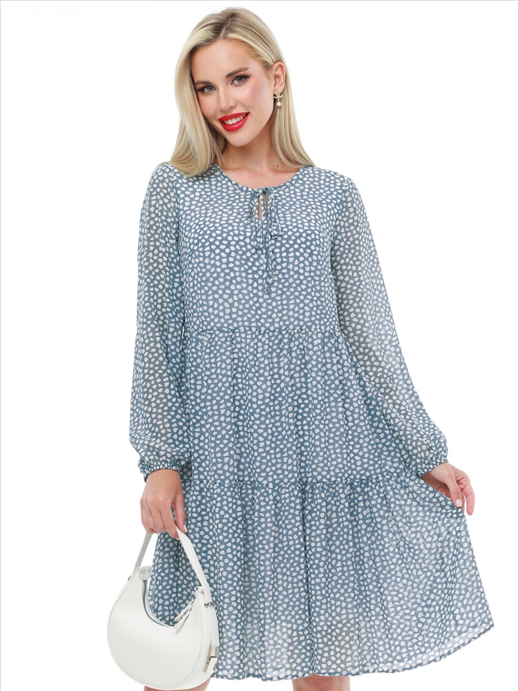 Воздушное шифоновое платье с принтом — нарядная модель в романтическом стиле, которая украсит как повседневный, так и вечерний гардероб. Свободный силуэт с ярусными оборками плавно расклешается к низу, дарит чувство легкости и прекрасно смотрится на женщинах любой комплекции. Пышные рукава выглядят кокетливо и нежно, а благодаря резинке по низу их длину можно регулировать. Завязки у округлой горловины с небольшим вырезом становятся утонченным завершением модели. Платье выполнено из невесомого приятного к телу шифона, который красиво струится в движении и создает эффект летящей походки. Модель на подкладе не просвечивает и позволяет чувствовать себя уверенно. Чтобы изделие долго радовало вас красотой и качеством, рекомендуется стирать его без отжима в деликатном режиме при температуре до 30 градусов.