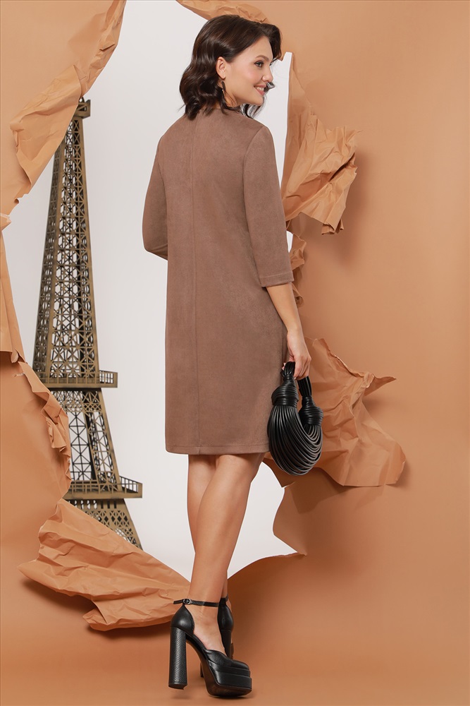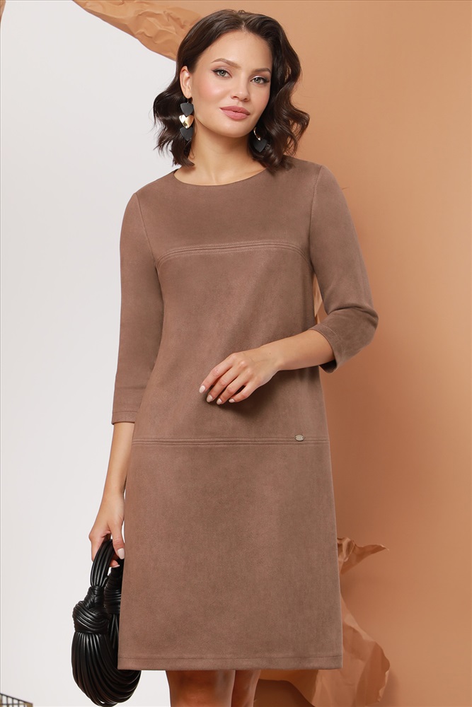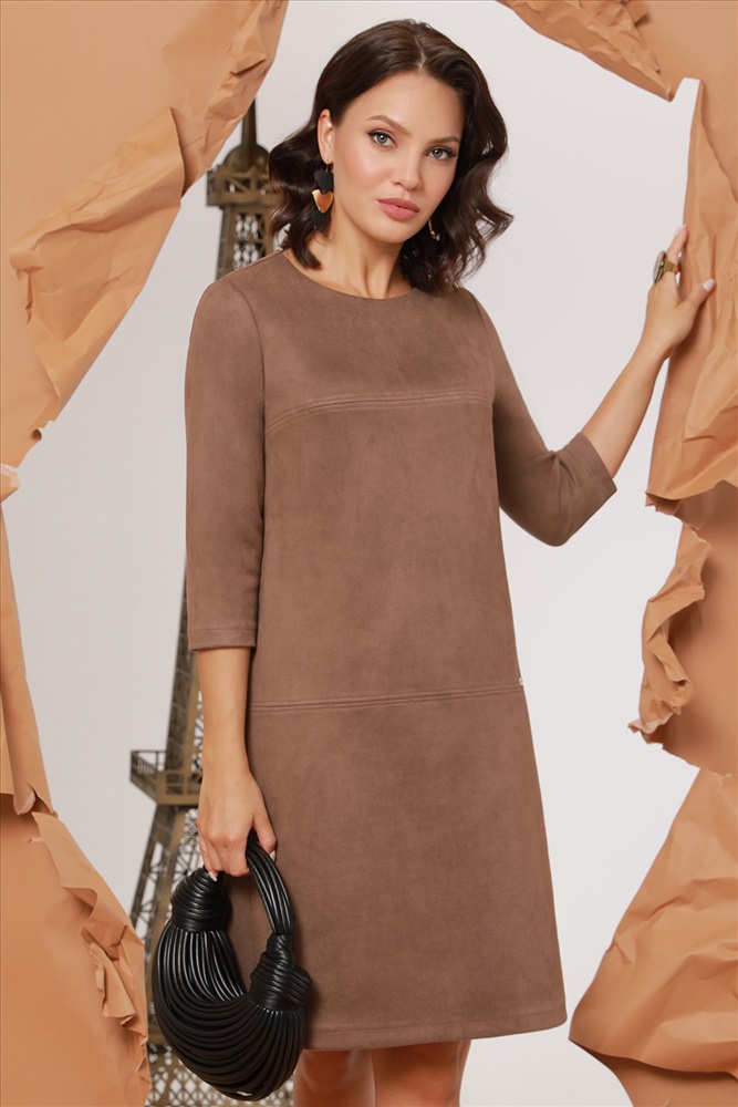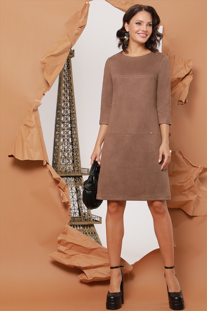 Цвет: Коричневый Лаконичное платье прямого силуэта из эко-замши на любой случай. Перед модели разделен на три части, швы выполнены с отстрочкой, которая придает образу премиальность. Длина рукава универсальна в любой сезон. Прекрасный вариант и на работу, и на торжественное мероприятие, все будет зависеть только от подобранных аксессуаров. Длина: