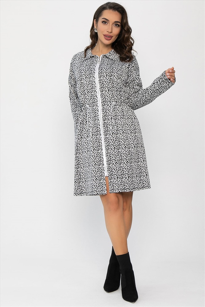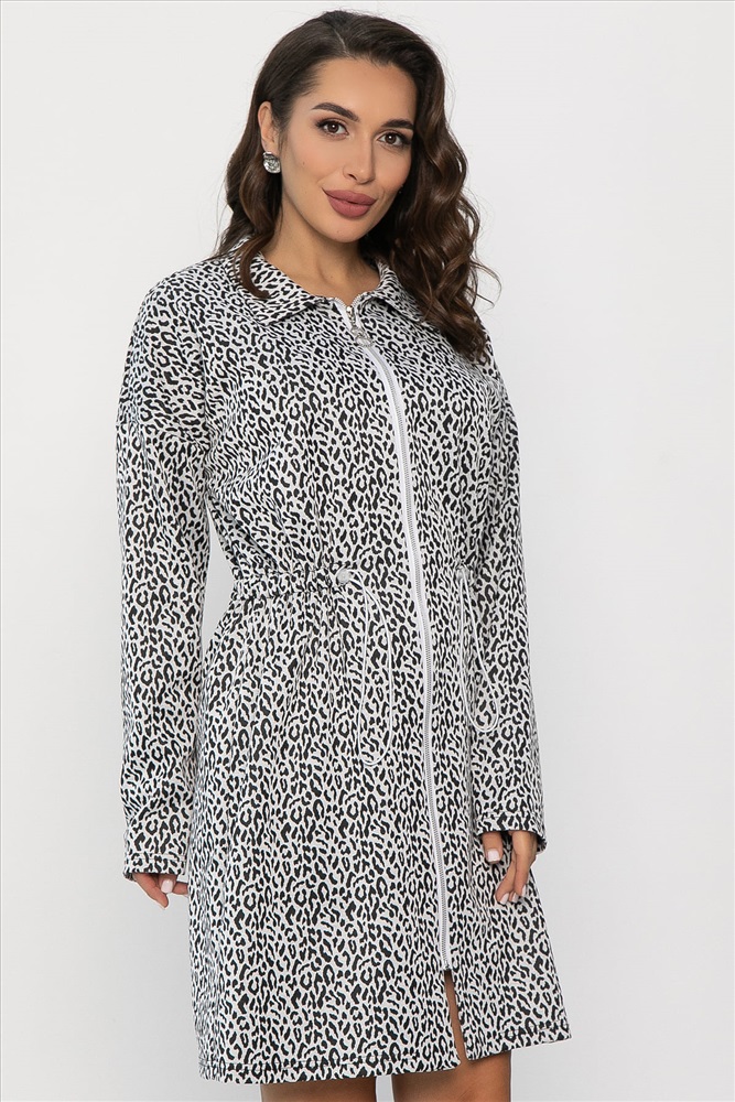 Платье, которое непременно привлечёт взгляды своим неповторимым дизайном и станет идеальным выбором для тех, кто ценит современные и актуальные образы. Элегантный воротник и застёжка на молнию придают ему утончённый вид. А спущенные плечи добавляют лёгкости и расслабленности. Кулиска с резинкой и регулятором на талии позволяет идеально подогнать силуэт под фигуру. Это платье станет универсальным и стильным элементом вашего гардероба, подчёркивая вашу индивидуальность.