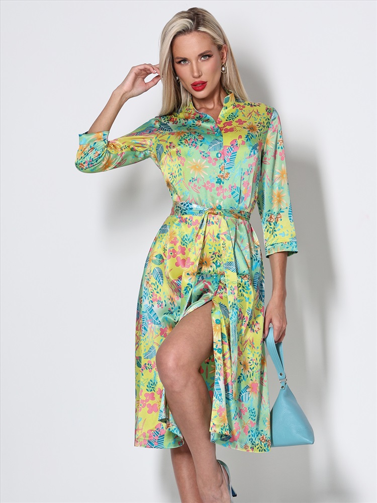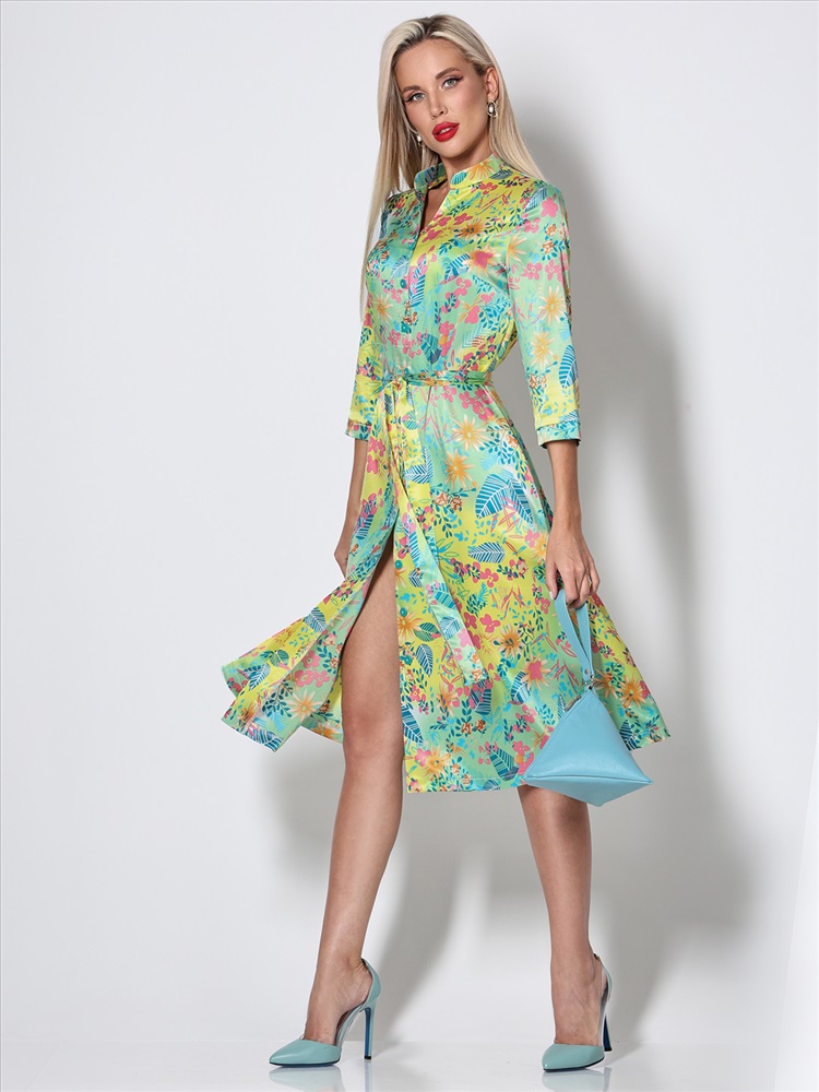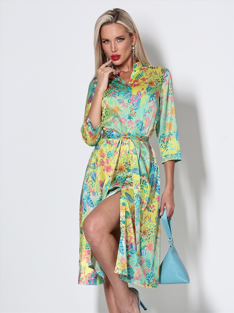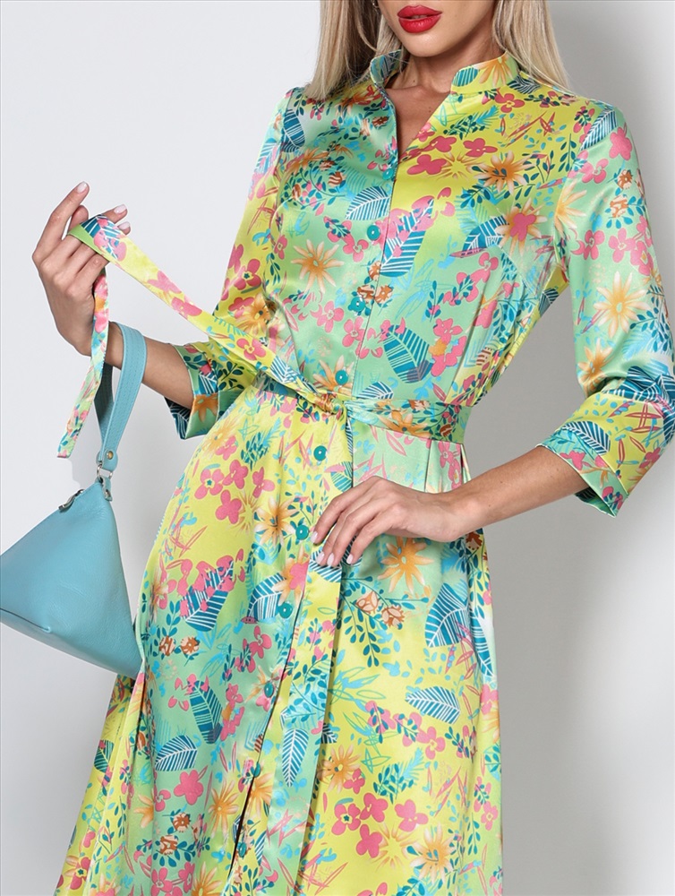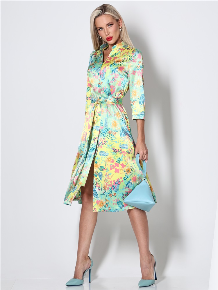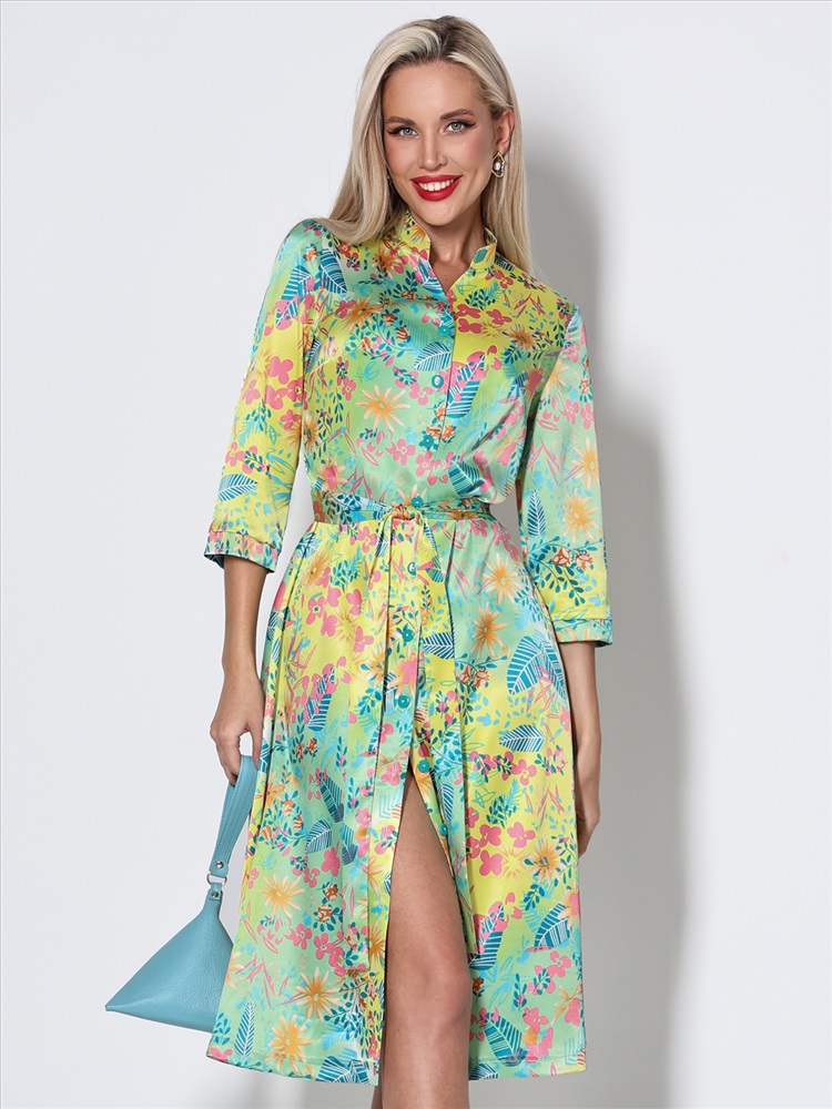 Декоративные элементы: Пояс Вид застёжки: Пуговицы Вырез горловины: Воротник-стойка Длина изделия по спинке: 108 Модель платья: Полуприлегающий силуэт Назначение: Повседневная Тип рукава: 3/4 Уход за вещами: Бережная стирка при 30 градусах Фактура материала: Текстильный Состав: 100% полиэстер Тип ткани: Плательно-костюмная Цвет: Мультиколор Длина: 44 размер - 108 см 46 размер - 108 см 48 размер - 109 см 50 размер - 109 см 52 размер - 110 см 54 размер - 110 см 56 размер - 111 см Рост модели на фотографии 170 см. Параметры модели: 88 х 63 х 96 см. Бережная стирка при 30 градусах Цвет изделия на фотографии может отличаться от фактического товара, что связано с искажением цветопередачи монитором, настройками фотоаппаратуры и прочими факторами Комментарии к товару