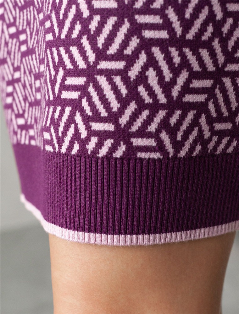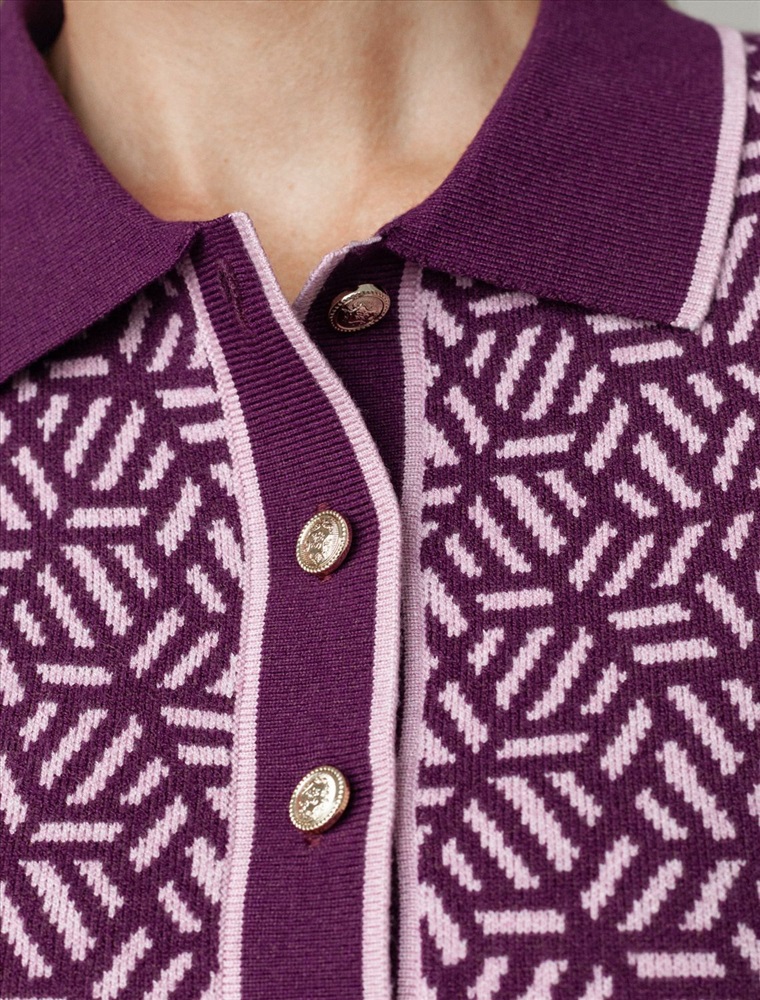 Плотность: 12 GG Параметры модели на первом фото: Рост 170, бюст 83, талия 64, бедра 88 Платье жаккардовой вязки выполнено из нежной пряжи на основе вискозы с добавлением кашемира. Модель прямого силуэта с застежкой планкой как у поло. Фигурные золотистые пуговицы вносят изысканности и роскоши. Изделие приятно ощущается на теле и поддерживает комфортный микроклимат. Сочетается в комплекте total-look с жакетом D31.150 Комментарии к товару
