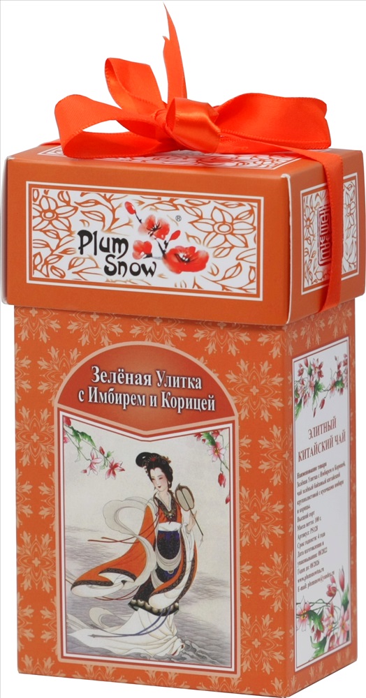 Чай зеленый байховый китайский крупнолистовой с кусочками имбиря и корицы.Зелёный чай в сочетании с этими двумя компонентами оказывает общеукрепляющий эффект на организм. Имбирь и корица ускоряют выработку пищеварительных ферментов, способны расщеплять жиры и сбалансировать обмен веществ, а также обладают согревающим эффектом и полезны на стадии начала простудных заболеваний. После заваривания, в чашке сохраняется насыщенный вкус и приятное освежающее послевкусие с различными оттенками пряностей.Plum Snow — чай из самого сердца Китая!