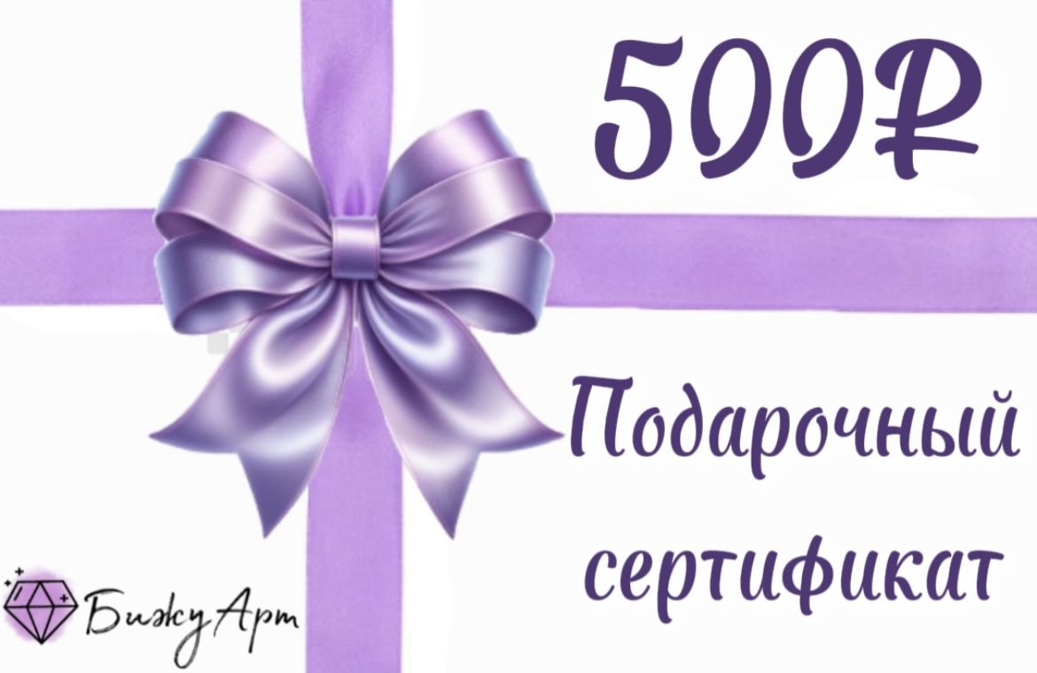 Данный сертификат даёт право на приобретение любой бижутерии и аксессуаров в нашем интернет-магазине При оплате бижутерии на сумму большую номинала сертификата, производится доплата. Если стоимость меньше номинала, разница не компенсируется. Подарочный сертификат может быть в электронном виде либо оформленный на бумажном носителе (подарочная карта в конверте). Каждому подарочному сертификату присваевается уникальный код. При оформлении заказа необходимо указать его в комментариях к заказу. СРОК ДЕЙСТВИЯ СЕРТИФИКАТА 1 ГОД С МОМЕНТА ПРИОБРЕТЕНИЯ.