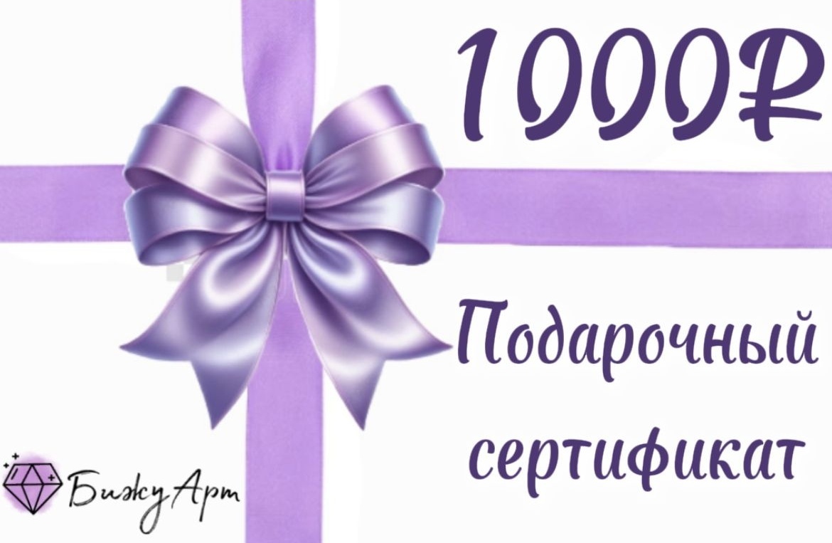 Данный сертификат даёт право на приобретение любой бижутерии и аксессуаров в нашем интернет-магазине При оплате бижутерии на сумму большую номинала сертификата, производится доплата. Если стоимость меньше номинала, разница не компенсируется. Подарочный сертификат может быть в электронном виде либо оформленный на бумажном носителе (подарочная карта в конверте). Каждому подарочному сертификату присваевается уникальный код. При оформлении заказа необходимо указать его в комментариях к заказу. СРОК ДЕЙСТВИЯ СЕРТИФИКАТА 1 ГОД С МОМЕНТА ПРИОБРЕТЕНИЯ.