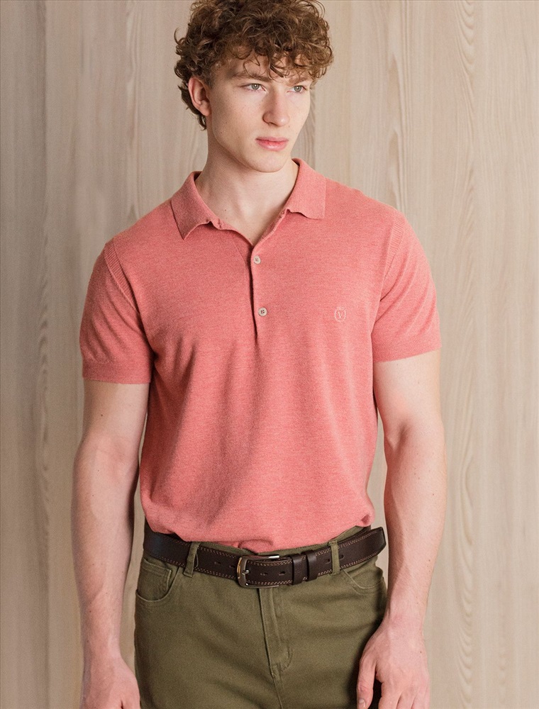 Поло терракотового цвета с эффектом меланж тонкой вязки из 100% хлопка. Отборные волокна хлопка исключительно мягкие, поэтому изделие легкое и шелковистое на ощупь. Идеальное решение для весны и лета. Офисного дресс-кода и повседневного образа. Модель дополнили вышитым логотипом бренда.
