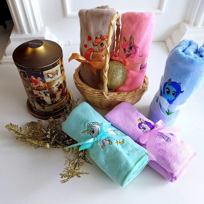 Полотенце "Цветные единорги" Символ года 2026!!! - красивое, быстросохнущее полотенце из невероятно мягкой ткани - микрофибры.