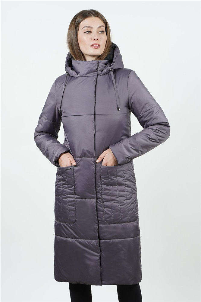 Стильное демисезонное  полупальто прямого силуэта с застежкой на молнию и потайные кнопки,с воротником стойкой и капюшоном. Вертикальные линии стёжки по карману визуально вытягивают фигуру и делают образ завершенным.