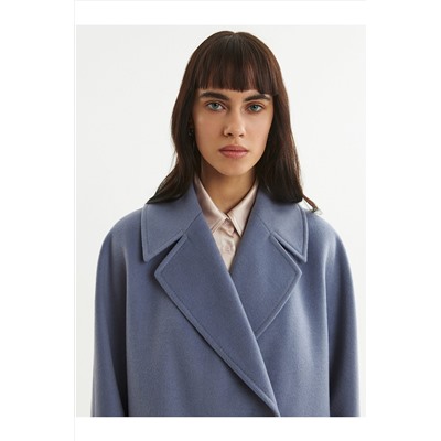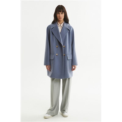 Двубортное укороченное пальто силуэта "кокон" из ворсовой пальтовой ткани нежного весеннего серо-голубого оттенка. Полупальто универсальной длины выше колена, с широким английским воротником и комфортным рукавом уникальной комбинированной конструкции: цельнокроеный спереди и реглан на спинке. Функциональным декоративным элементом служат большие накладные карманы с клапанами. Остроты пальто добавляют широкие отделочные строчки. Застежка на два ряда стильных пуговиц под натуральный рог. Благодаря высокому содержанию шерсти пальто очень уютное и теплое. А для дополнительной защиты от непогоды изделие выполнено с использованием высокотехнологичной мембраны RaftPro. Произведено в Санкт-Петербурге.