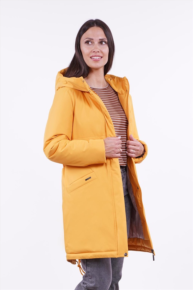 Современное утепленное полупальто-парка прямого силуэта, модель выполнена из ткани с умеренной плотностью, которая хорошо держит форму, износоустойчива и неприхотлива в чистке. Центральная застежка на молнию дополнена планкой и фирменными кнопками. Карманы листочки. Талию по спинке подчеркивает нерегулируемая кулиса.