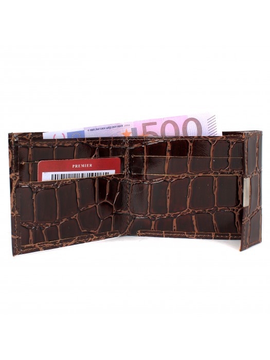 Портмоне мужское Premier-М-502 натуральная кожа 1 отд, 4 карм, коричневый темный крокодил крупный (3) 162435