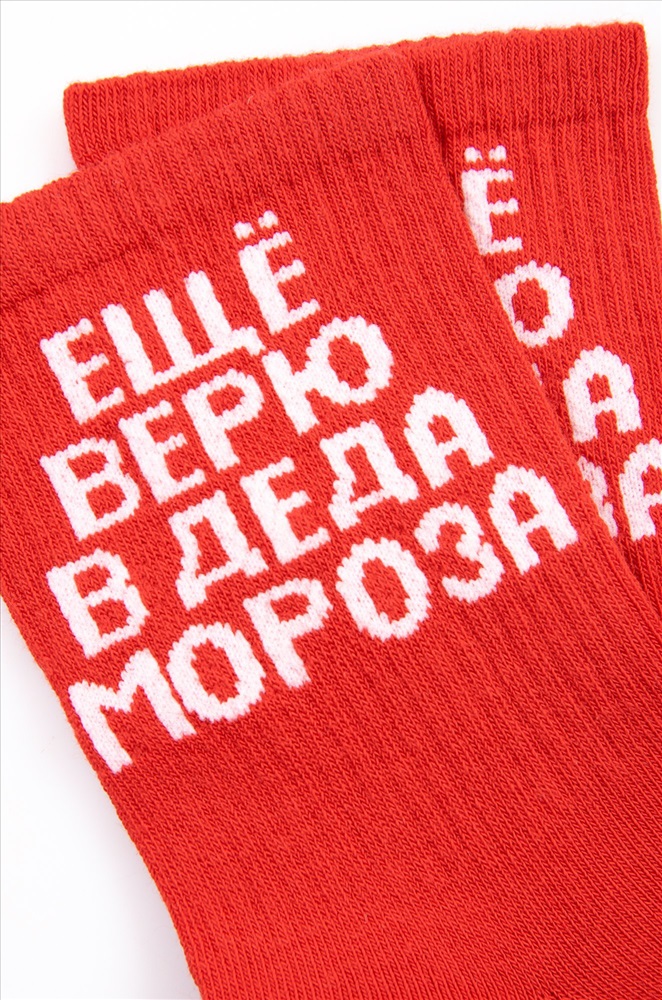 Демисезонные носки выполнены из нежной хлопковой пряжи. Благодаря полиамиду и эластану в составе они отлично тянутся и сохраняют форму и цвет даже после частых стирок. Трикотажные носки нежно облегают ноги и не сползают при активных движениях благодаря плотной вязке. Эластичная резинка не сдавливает кожу и не ощущается в течение дня, а прикольный принт поднимает настроение и создает праздничную атмосферу. Благодаря классической высоте носочки комфортны под любой одеждой. Длинные носки из трикотажа подойдут для зимних и осенних дней. Они идеальны для дома, поездок и семейных тематических фотосессий. Красные новогодние носки с рисунком станут отличным дополнением к подарку на праздник. Комментарии к товару