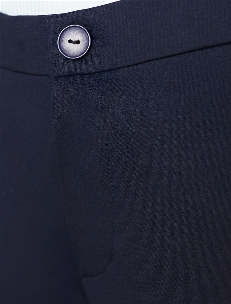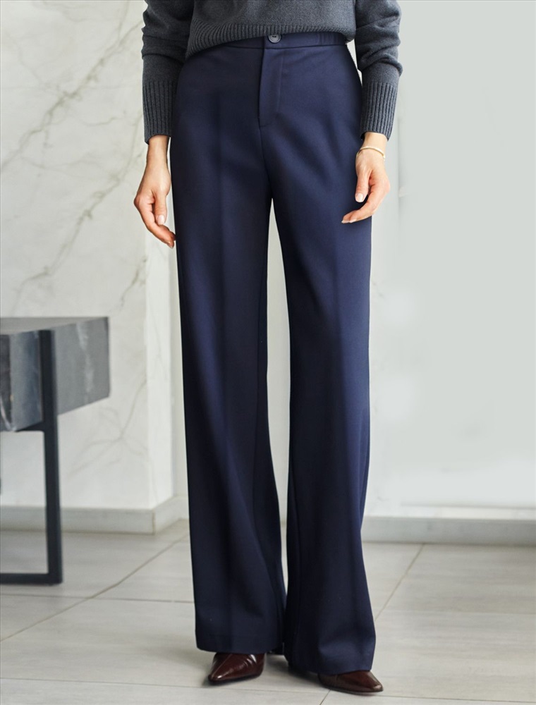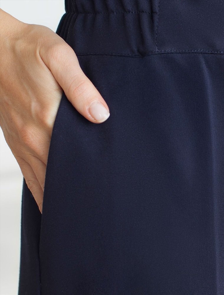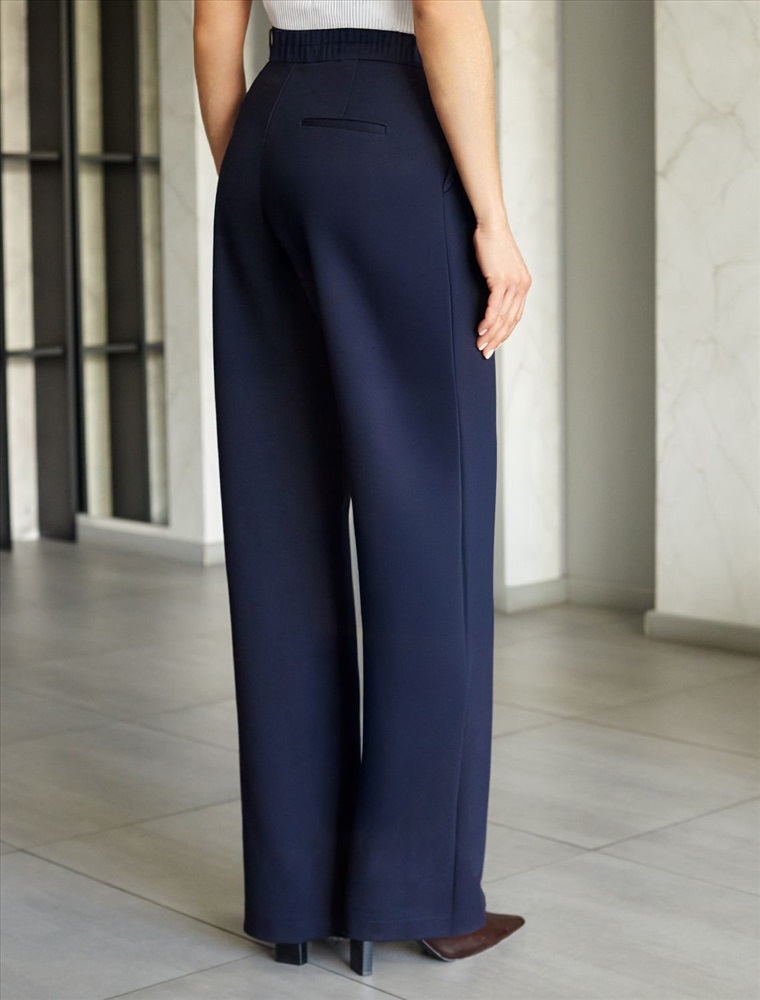Плотность: 390 Г/м2 Прямые брюки выполнены из трикотажа джерси. Модель дополнена боковыми карманами и поясом на резинке сзади. Заутюженные стрелки визуально вытягивают силуэт. Изделие хорошо держит форму, отлично тянется и почти не мнется во время использования. Идеальный вариант в офис или в повседневный классический стиль. Комментарии к товару