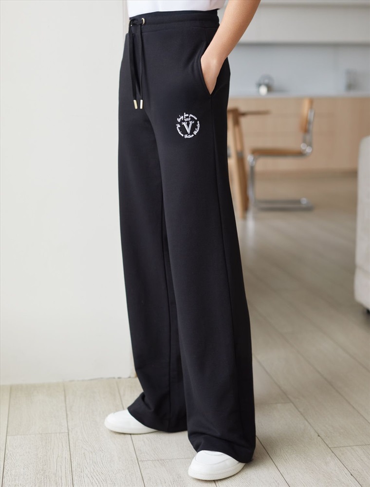 Параметры модели на первом фото: Рост 172, бюст 88, талия 64, бедра 88 Брюки выполнены из премиального футера трехнитки без начеса. Модель дополнена эластичным поясом на резинке и хлопковым шнурком с золотистой фурнитурой. По бокам два кармана. Наличие эластана в составе гарантирует формоустойчивость и износостойкость изделия. Изделие сочетается в костюме с худи D49.053 Комментарии к товару