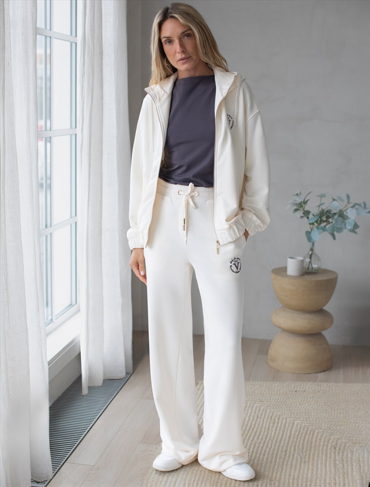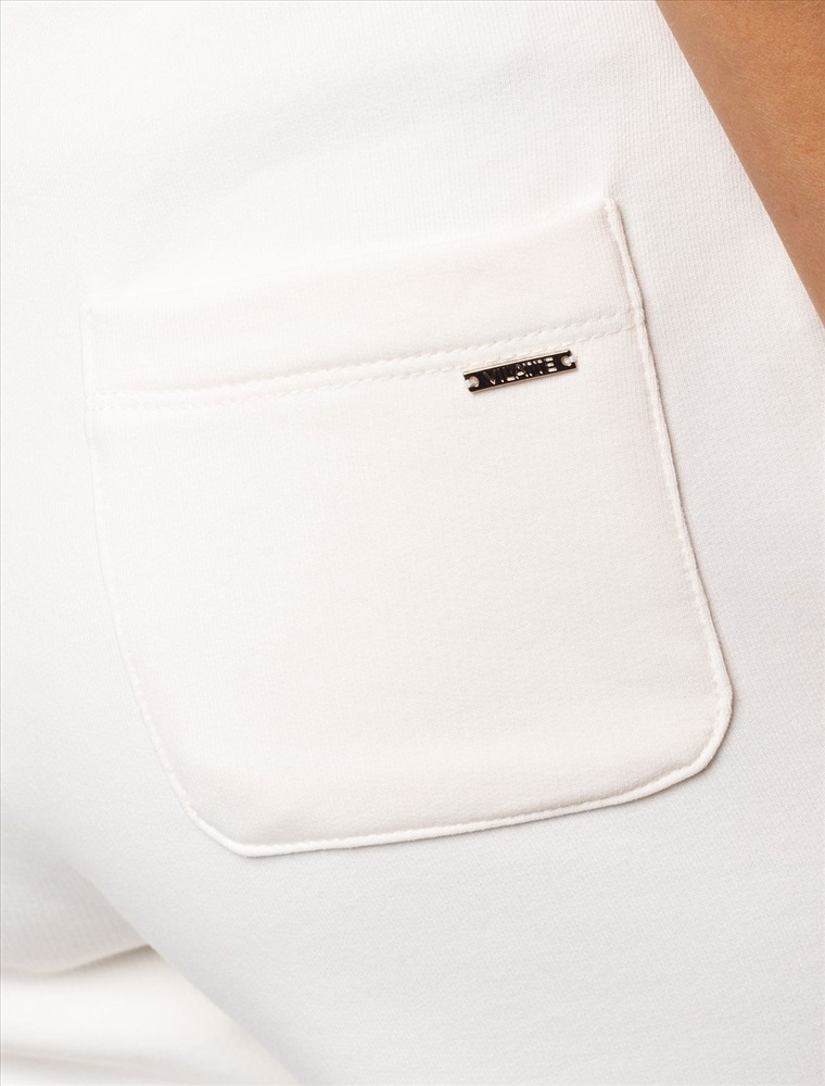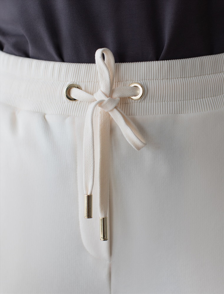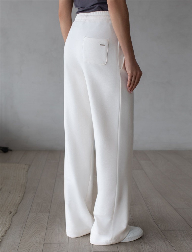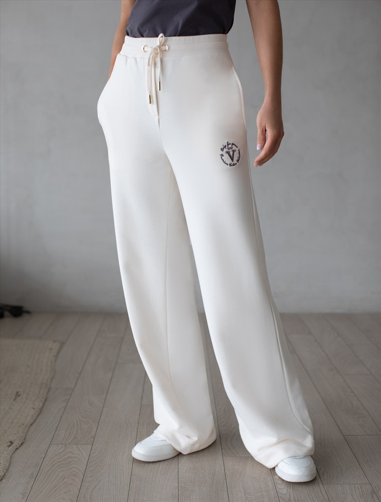 Параметры модели на первом фото: Рост 172, бюст 88, талия 64, бедра 88 Брюки выполнены из премиального футера трехнитки без начеса. Модель дополнена эластичным поясом на резинке и хлопковым шнурком с золотистой фурнитурой. По бокам два кармана. Наличие эластана в составе гарантирует формоустойчивость и износостойкость изделия. Изделие сочетается в костюме с худи D49.054