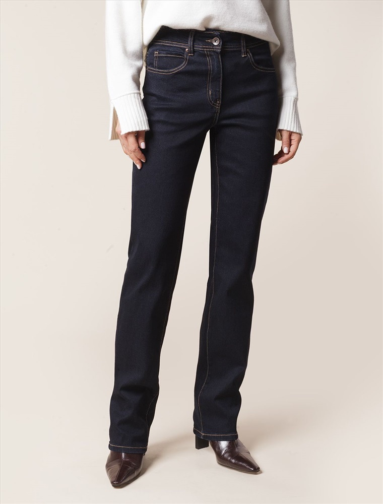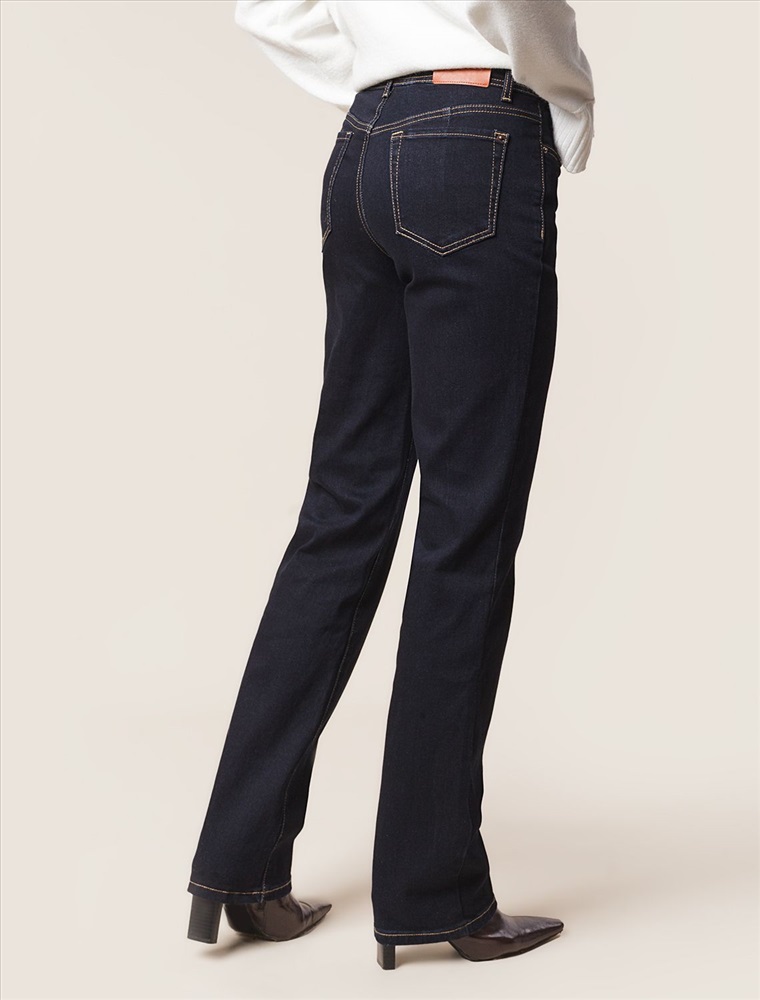 Плотность: 14.5 OZ Параметры модели на первом фото: Рост 172, бюст 88, талия 64, бедра 88 Прямые джинсы выполнены из эластичного денима. Удлиненная модель классического темно-синего цвета с контрастными строчками впишется в любой гардероб. Комфортная посадка на талии подходит для любой фигуры, ткань хорошо тянется и не сковывает движений. На поясе сзади расположен нашивка из эко-кожи с логотипом бренда. Длина изделия позволяет выбрать к образу обувь на каблуке Комментарии к товару
