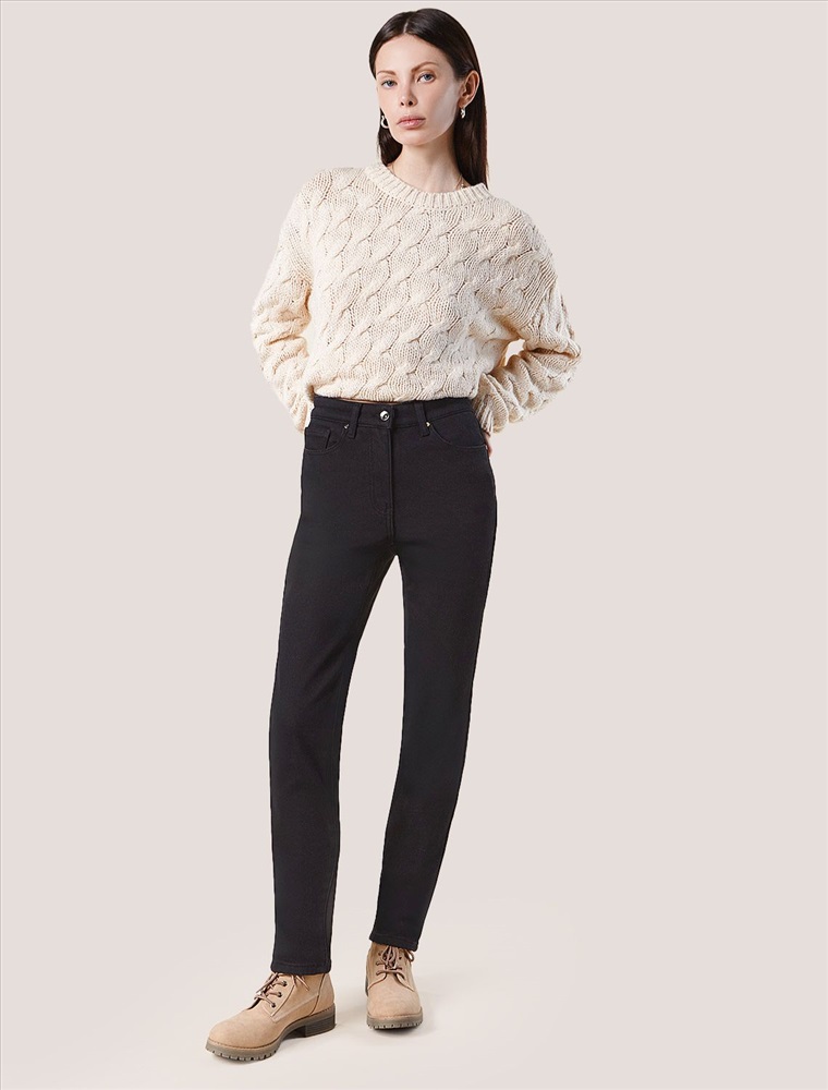 Плотность: 17.2 OZ Параметры модели на первом фото: Рост 172, бюст 88, талия 64, бедра 88 Черные прямые джинсы выполнены из эластичного денима. Внутренняя сторона изделия утепленная мягким флисом обеспечит тепло, комфорт и защиту от холода. Модель стандартной длины с классической посадкой на талии визуально вытягивает силуэт. Лучший вариант для зимнего периода, когда хочется выдержать стиль и практичность. Комментарии к товару