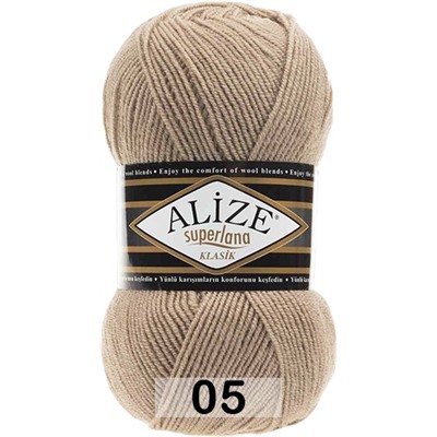 Ализе суперлана класик. Классическая однотонная пряжа средней толщины с 25% шерсти. Подходит для создания вещей на осень. пуловеры, платья, кардиганы, шапки и шарфы из этой пряжи отлично держат форму и прекрасно согреют Вас в холодную погоду. Инструменты: спицы 3 – 4, крючок 3 - 4.