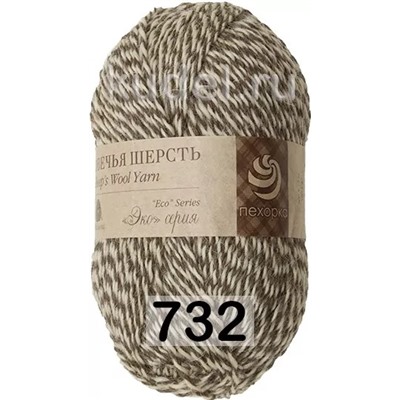 Овечья шерсть натуральных оттенков средней толщины. Умеренно скрученная, колючеватая, но очень тёплая. Подходит для любителей естественности в трикотаже, так как позволяет создать вещи в стиле кантри. Предназначена для вязания мужских свитеров, жилетов, женских кардиганов. Для детей желательно сажать вещи на подклад. Рекомендуемые инструменты - спицы 3,5 - 4,75 крючок 3-4. На вязаном образце 10х10см получается 28 рядов по 21 петле. Узоры - резинки, гладь, косы, араны, полуажур.